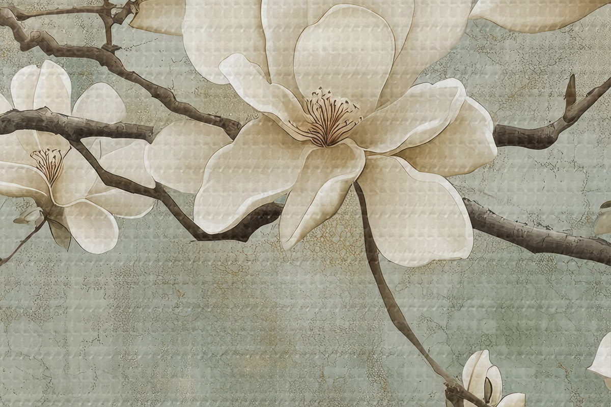 Picturi rotunde Magnolia ramură pe un fundal pastel grunge Nr r43322