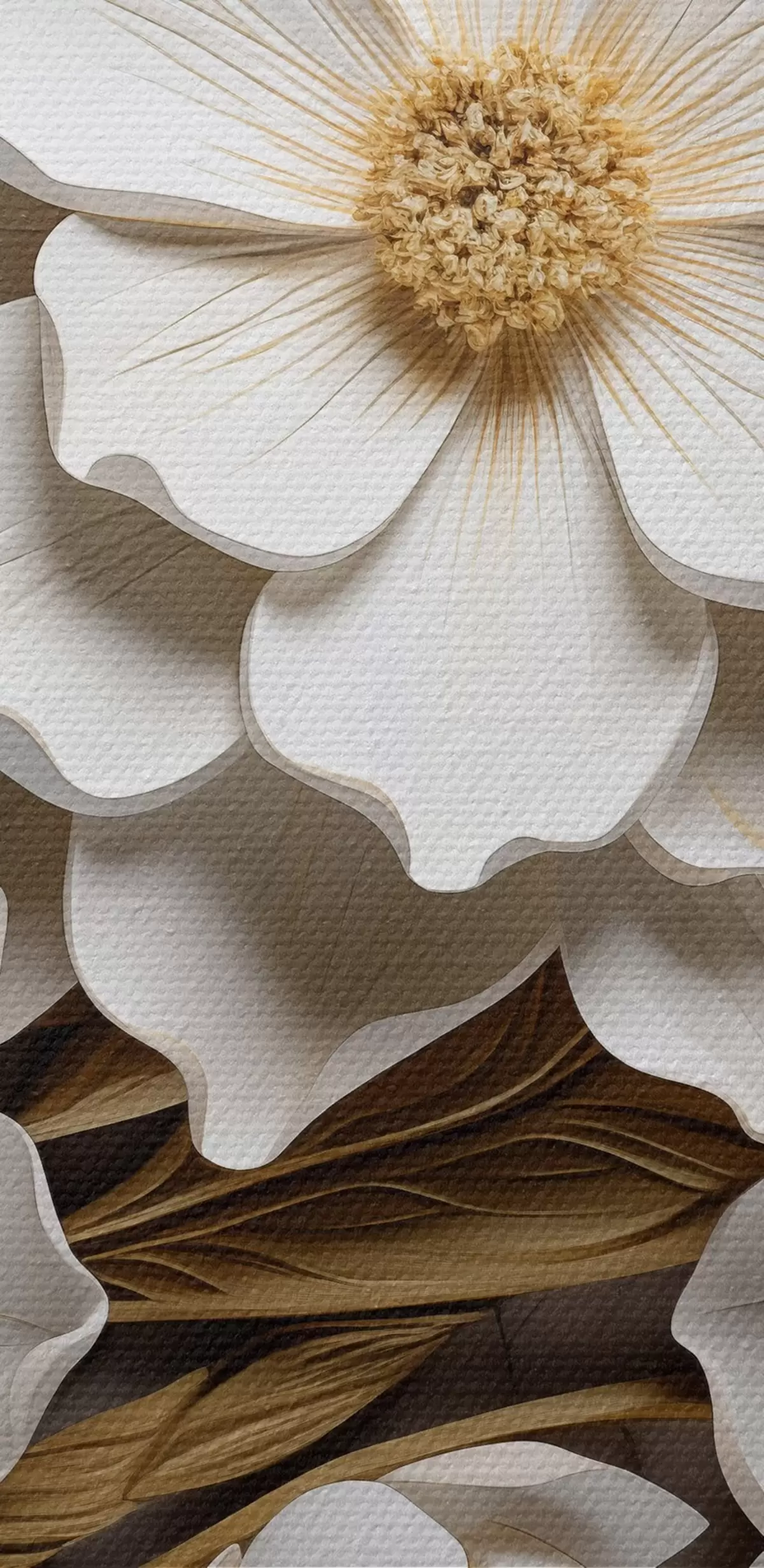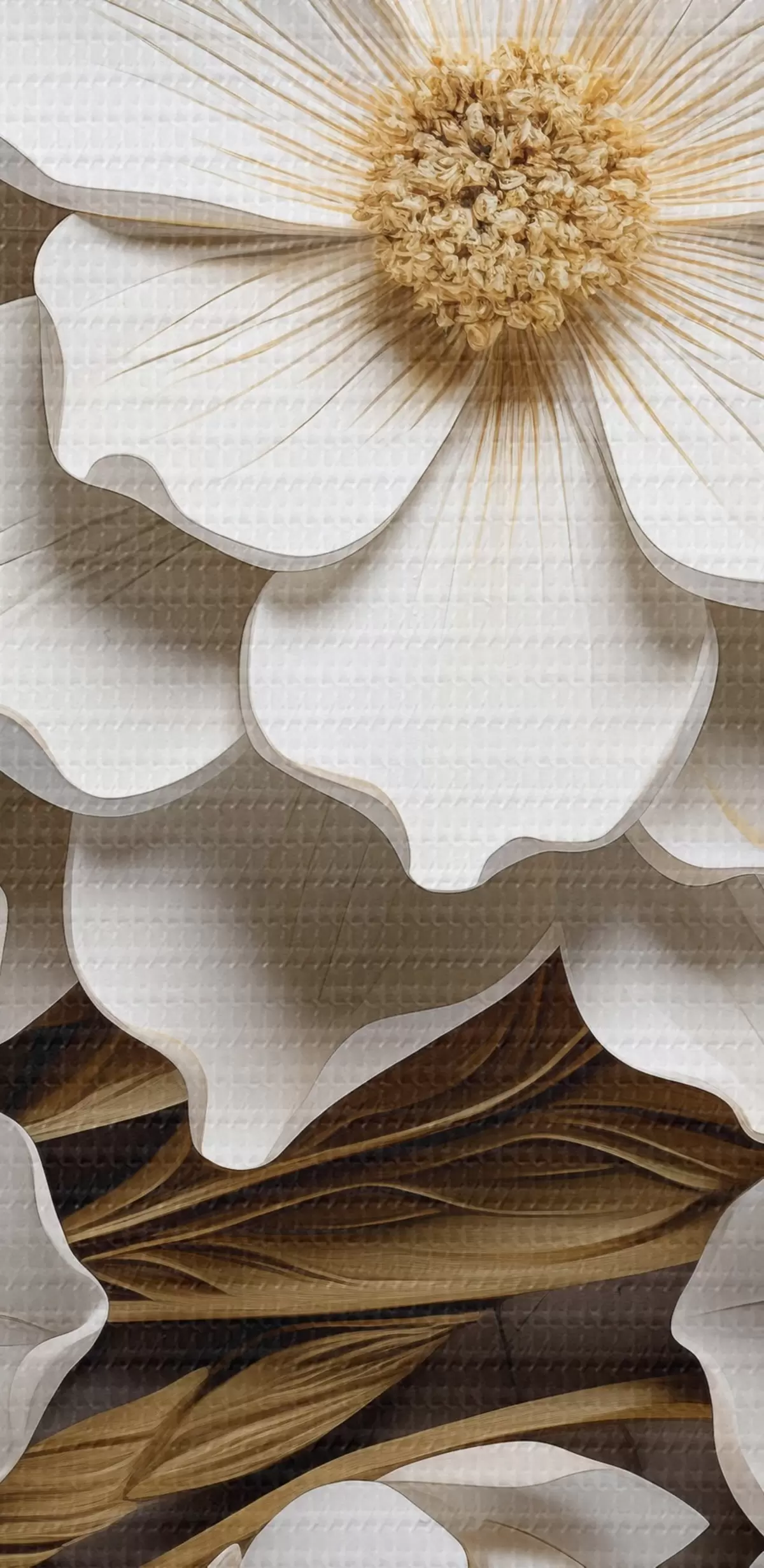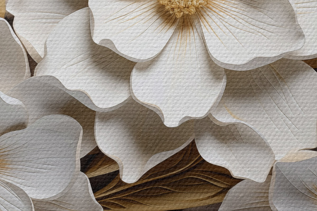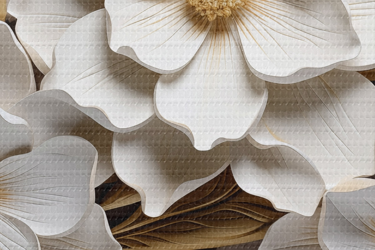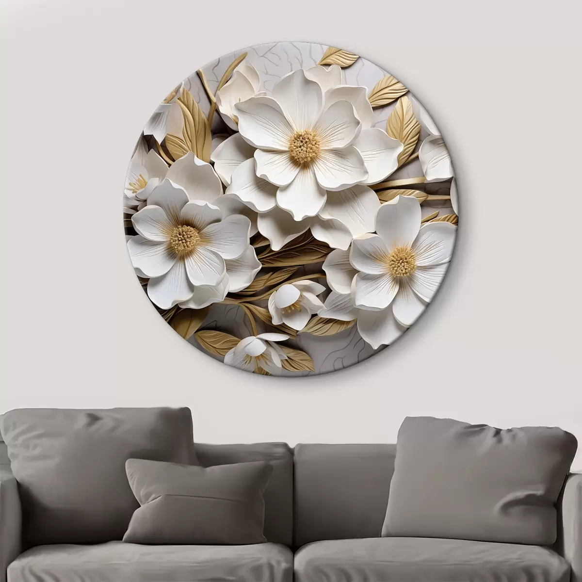 Picturi rotunde Flori albe în stilul unei fresce în relief cu accente galbene Nr r43330