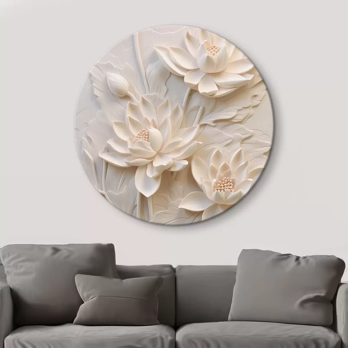 Picturi rotunde Mucegai alb, imitație, flori r43334