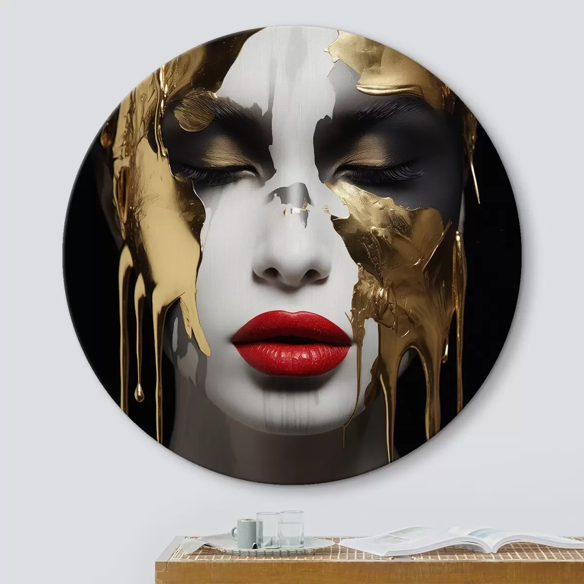 Picturi rotunde Oameni, fată cu buze roșii Nr r43336