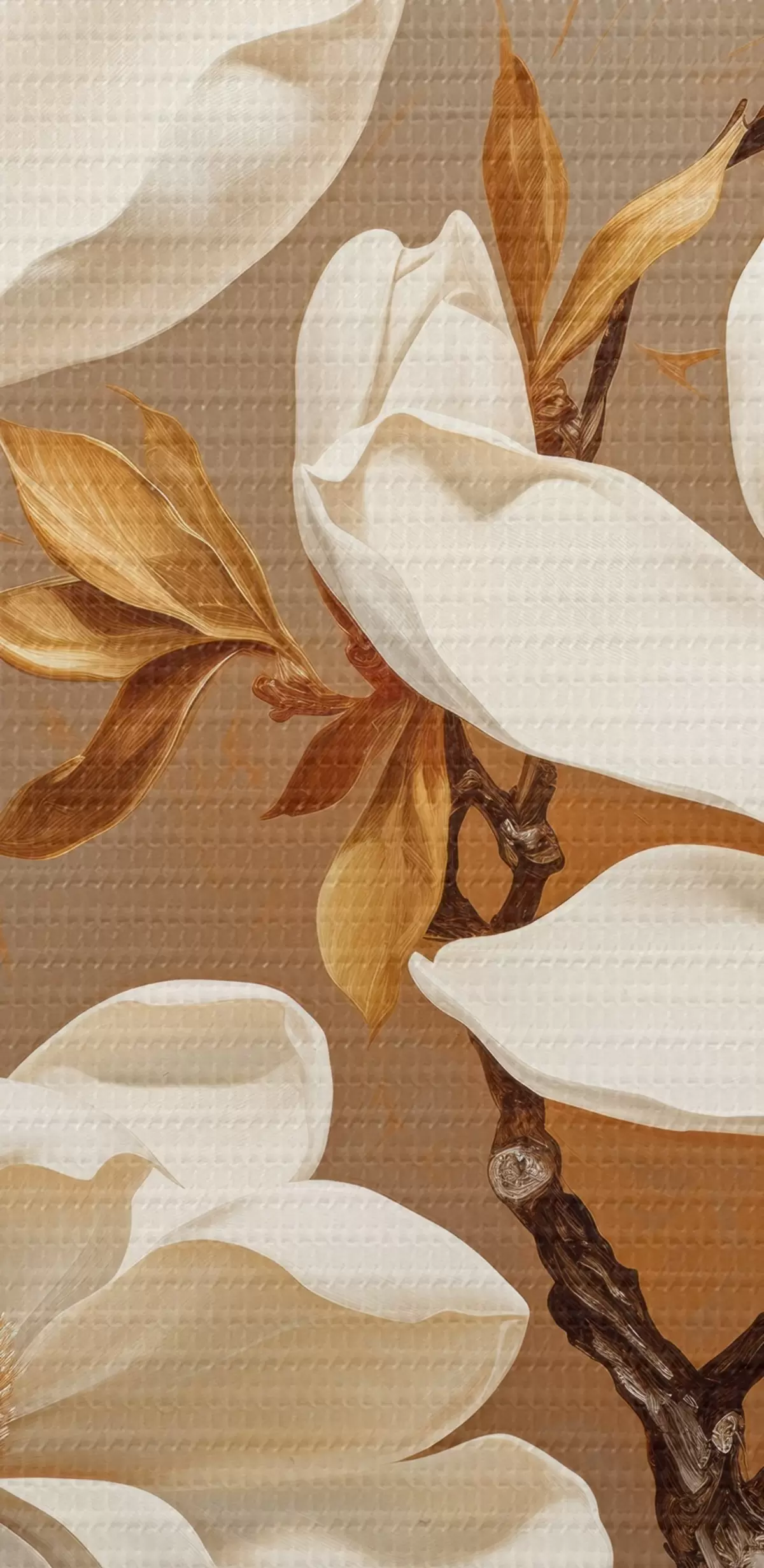 Picturi rotunde Stil pictură în ulei cu o magnolie albă pe o ramură pe un fundal galben Nr r43361