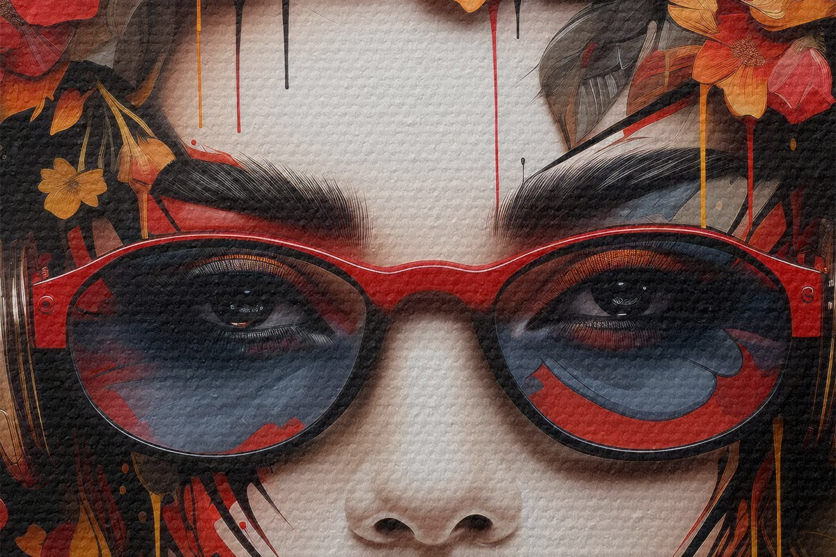 Picturi rotunde Femeie cu flori pe cap, stil street art r43362