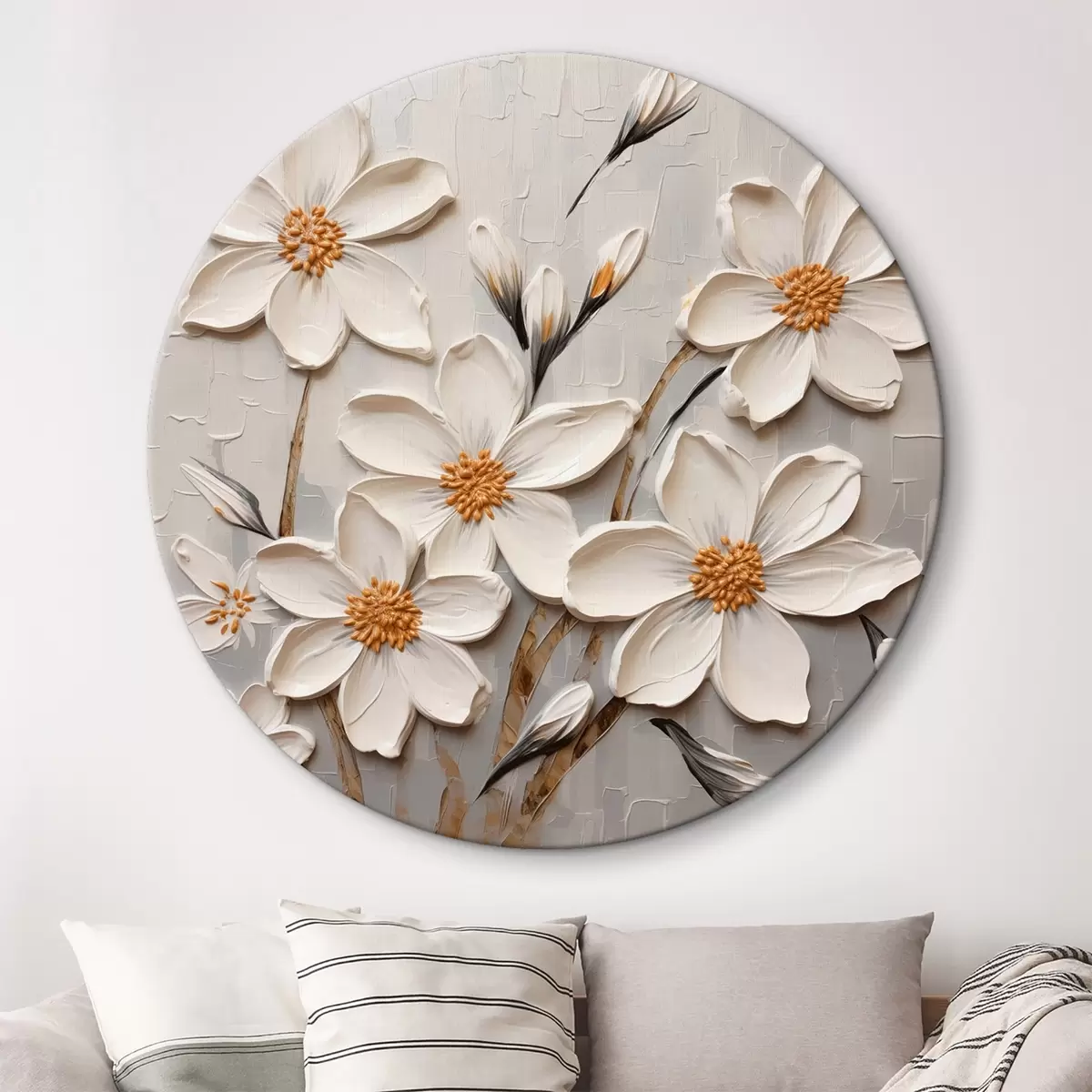 Picturi rotunde Flori albe voluminoase în stil pictură cu tușe mari Nr r43366