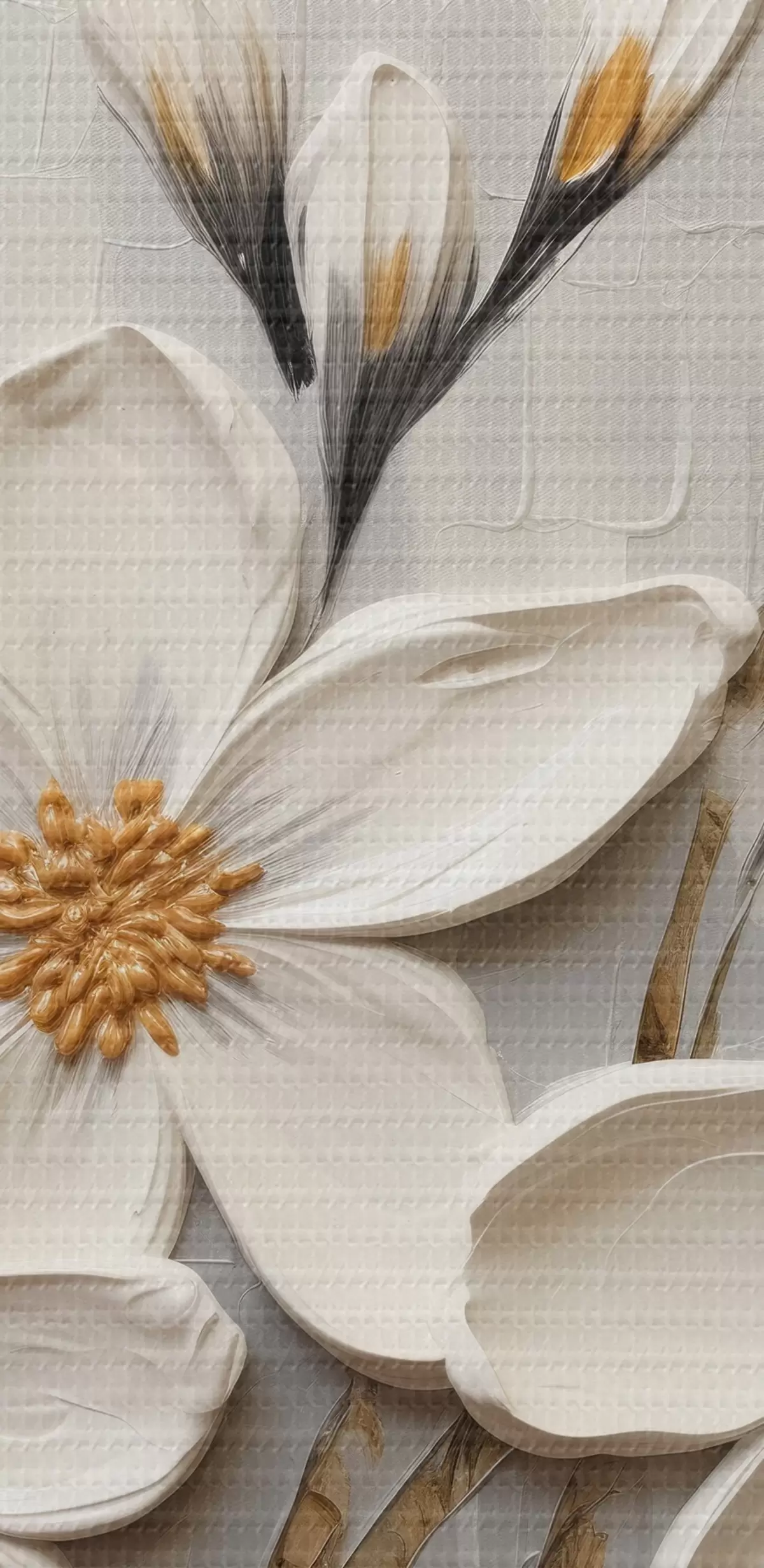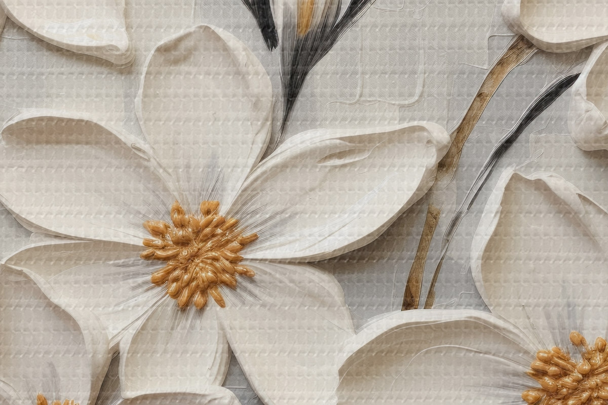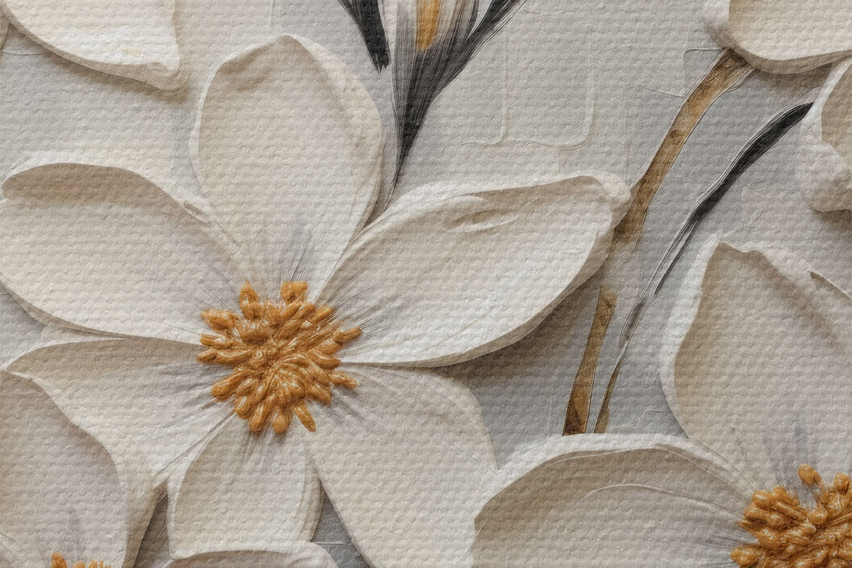 Picturi rotunde Flori albe voluminoase în stil pictură cu tușe mari r43366
