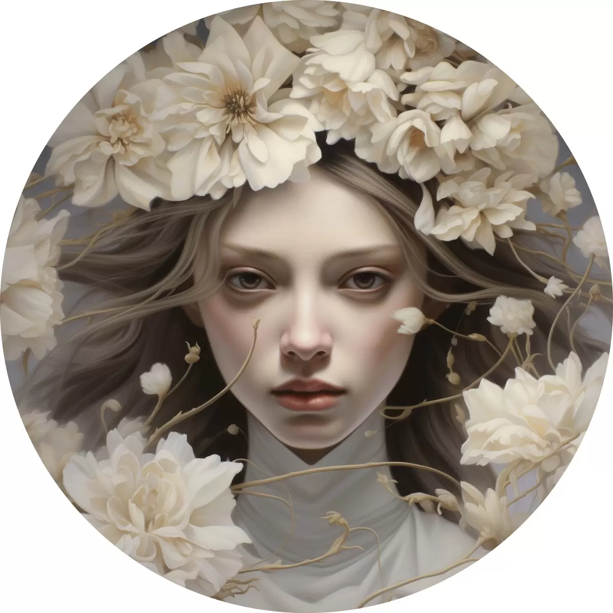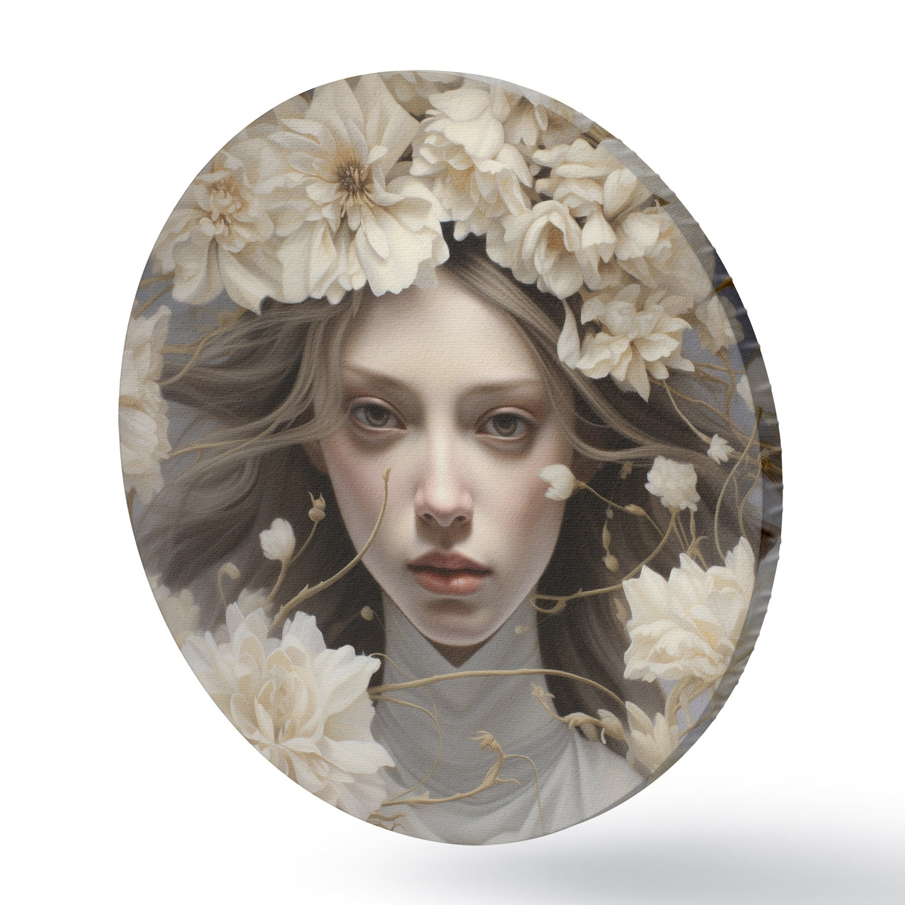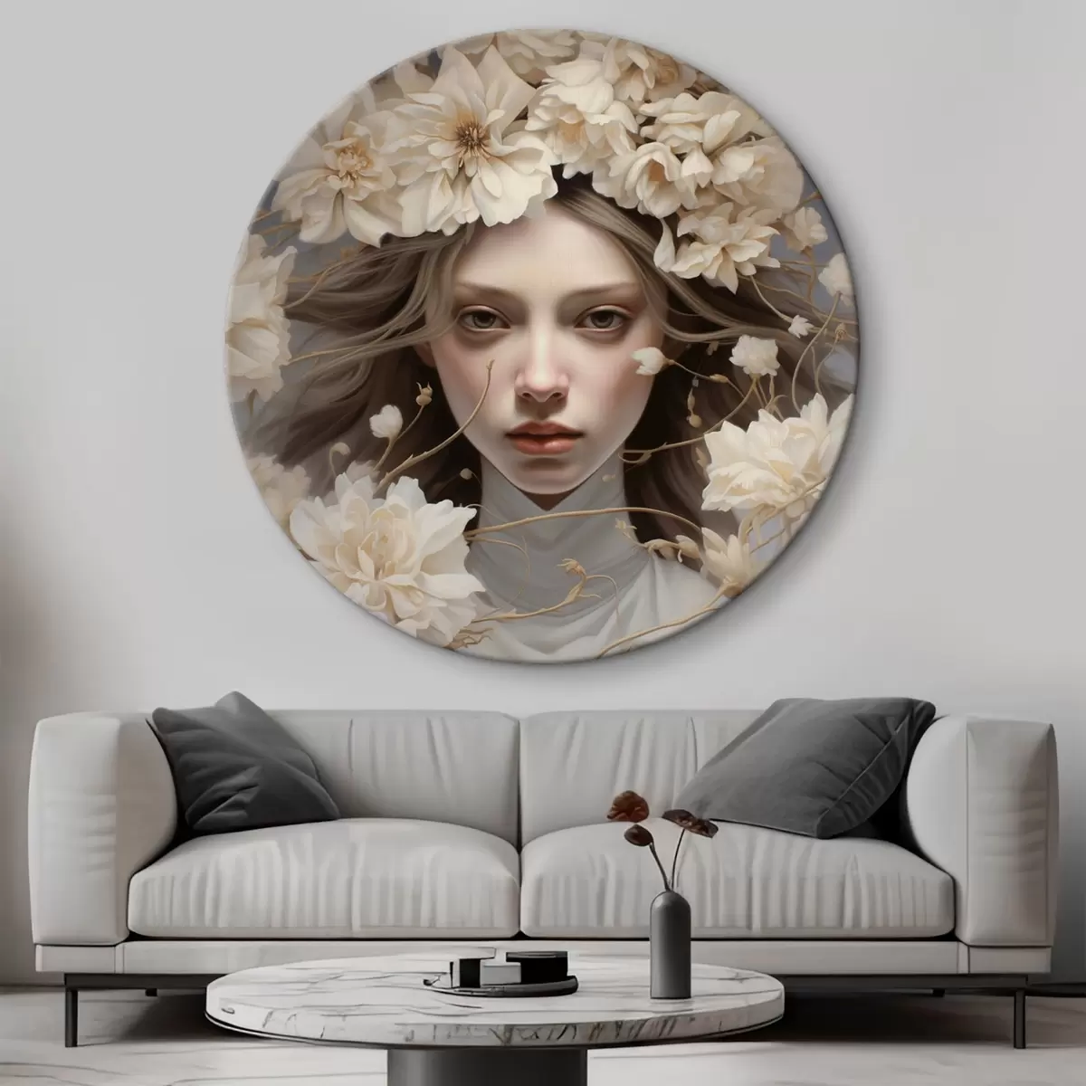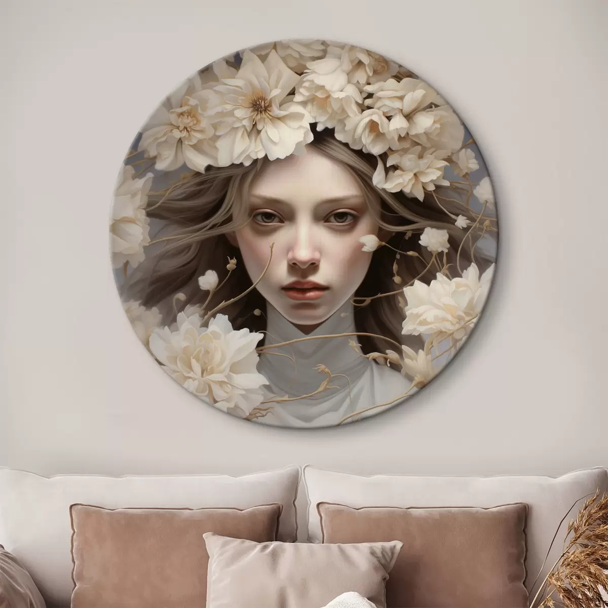 Picturi rotunde Fată în flori în tonuri calme r43367