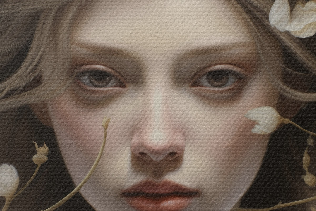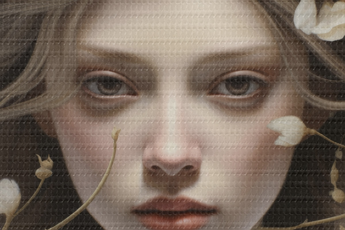 Țesătura fină a firelor de pe această pânză seamănă cu suprafața pânzelor artiștilor profesioniști.
