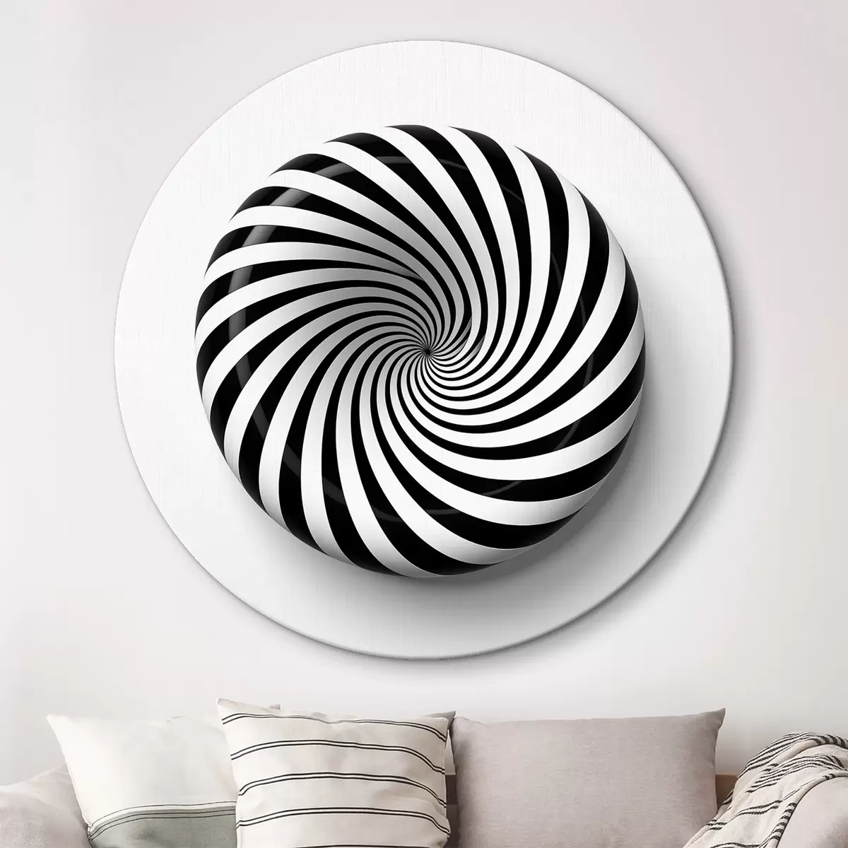 Picturi rotunde Grafic geometric în vârtej, grafică neagră pe fundal alb r43376