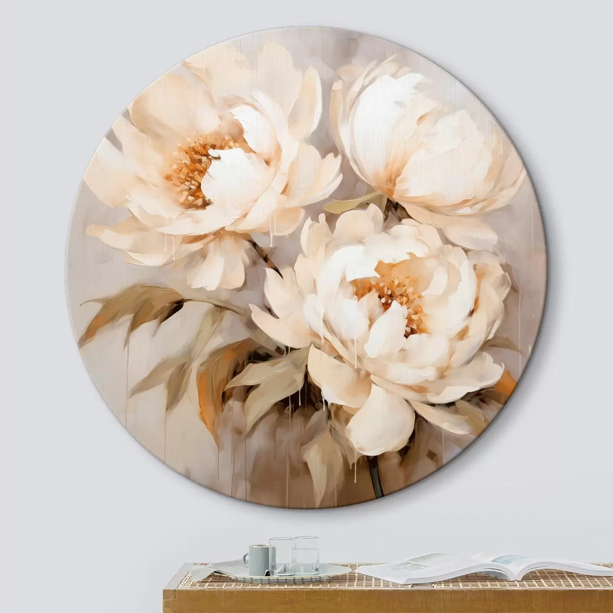 Picturi rotunde Bujori delicate în tonuri neutre în stilul picturii abstracte Nr r43387