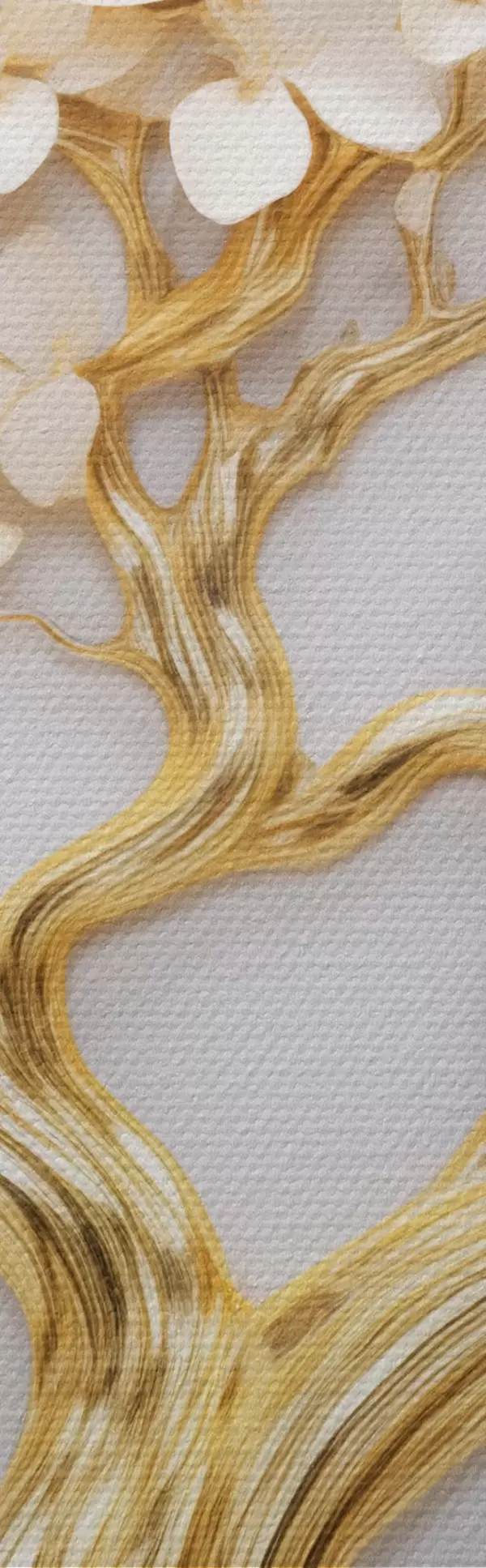Picturi rotunde Copac decorativ cu flori albe, fundal alb, pietre albe, detalii complicate, artă inspirată din natură r43388