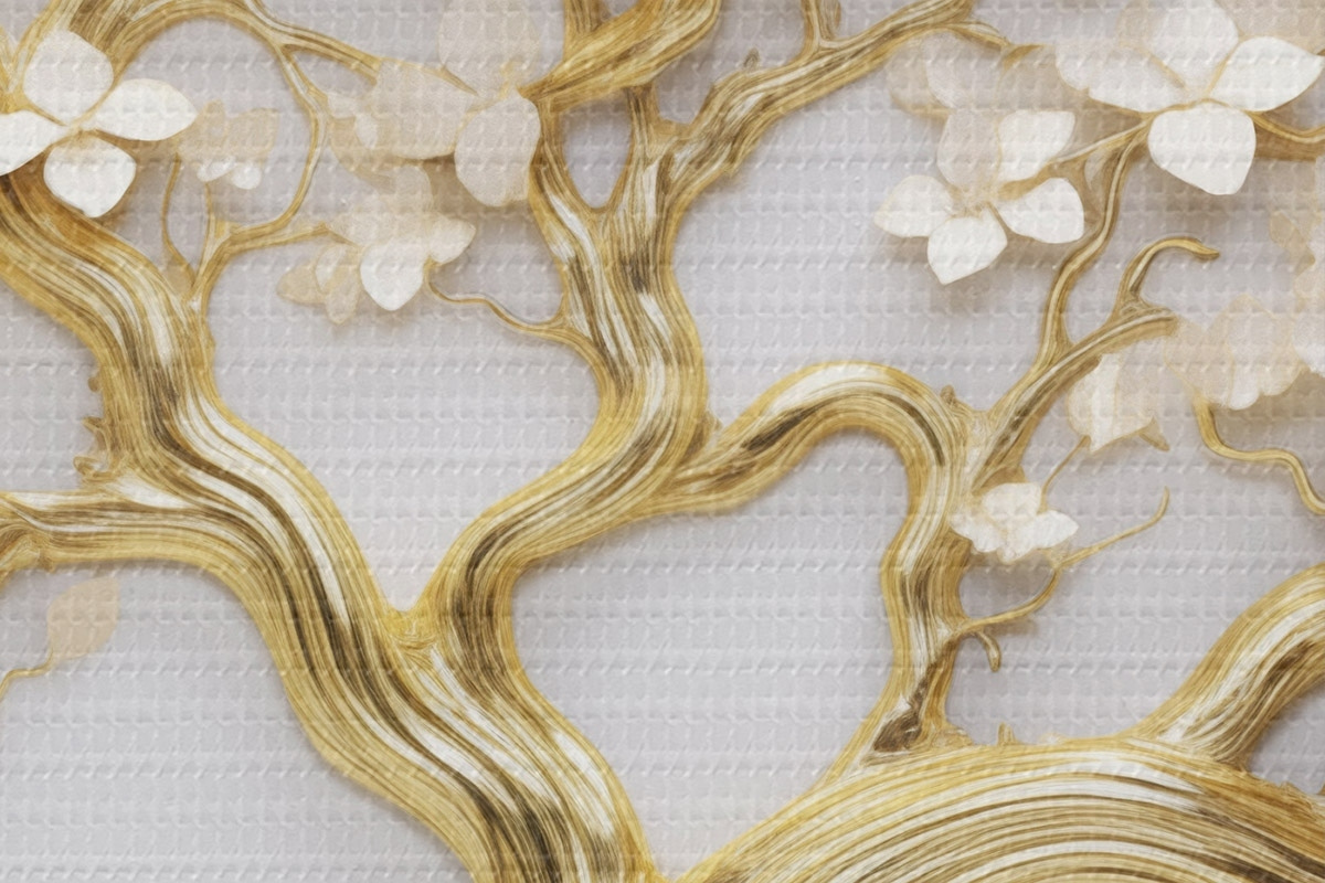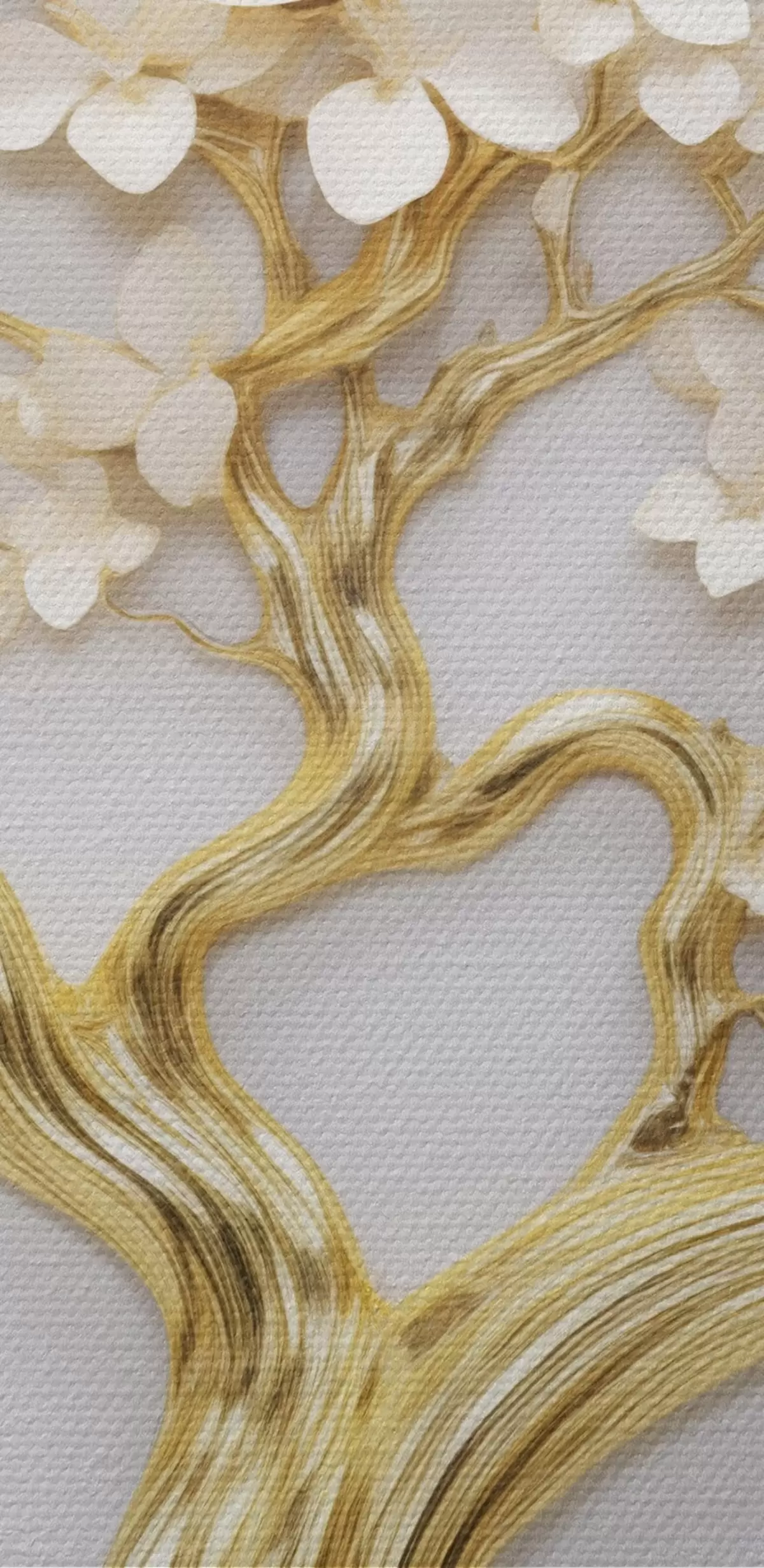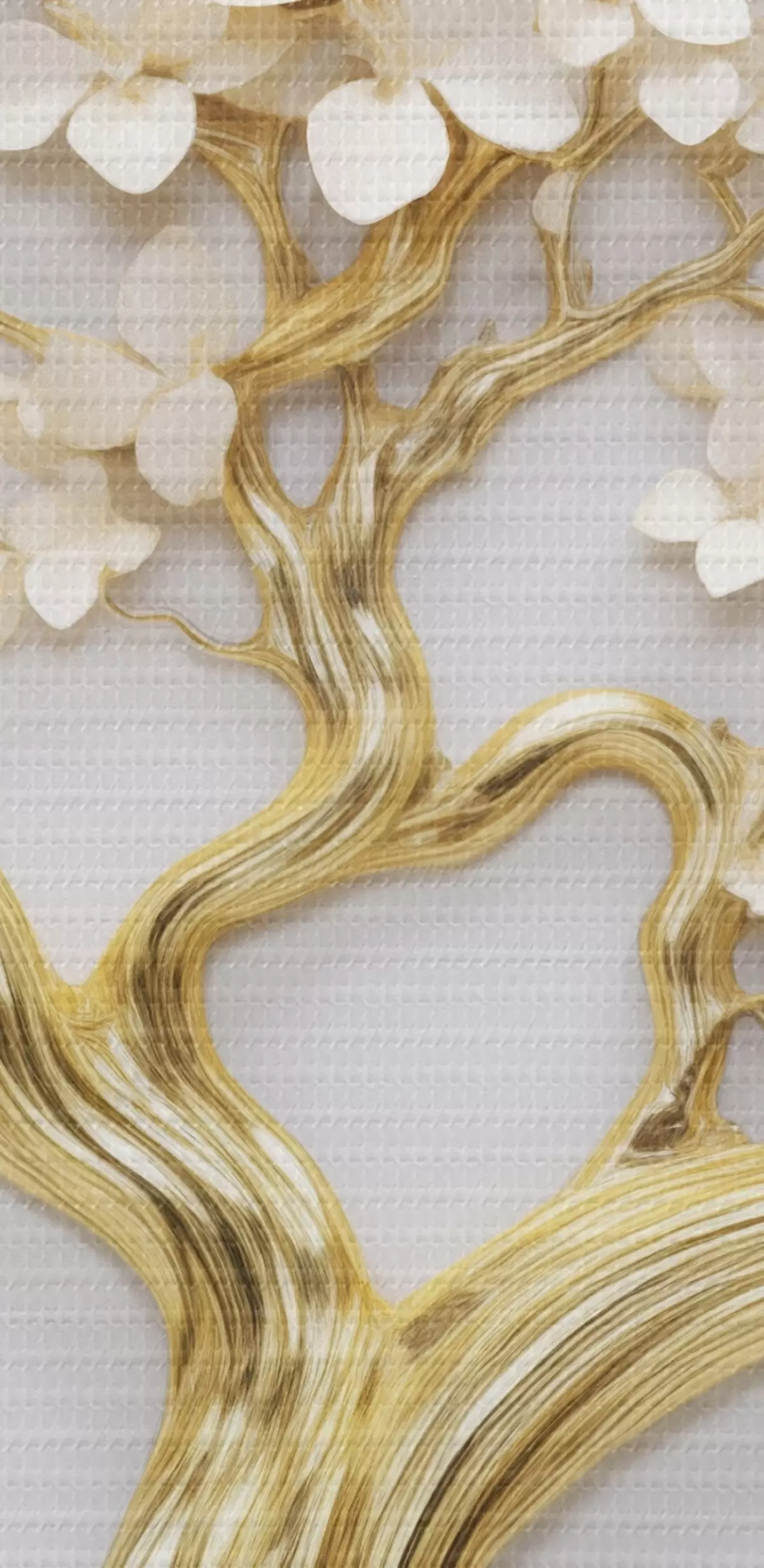 Picturi rotunde Copac decorativ cu flori albe, fundal alb, pietre albe, detalii complicate, artă inspirată din natură Nr r43388