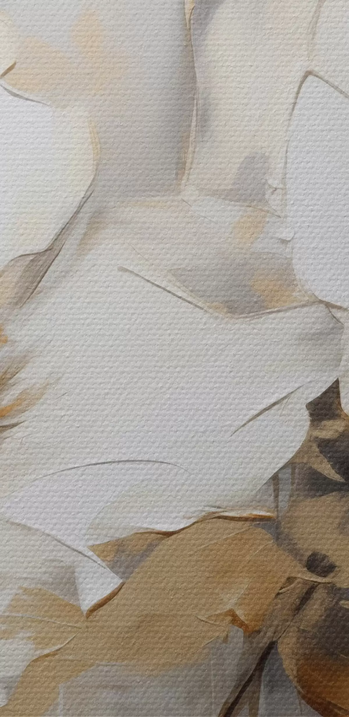 Picturi rotunde Flori albe cu frunze galbene pe un fundal alb, imitație de tușe groase, stil modern texturat r43389