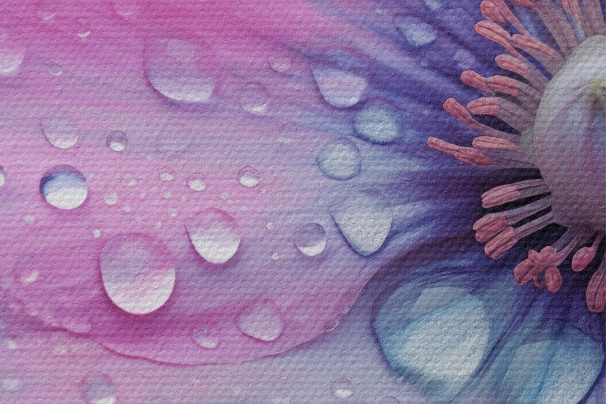 Picturi rotunde Flori roz și violet în plină floare acoperite cu picături de apă, pe fundal întunecat Nr r43394