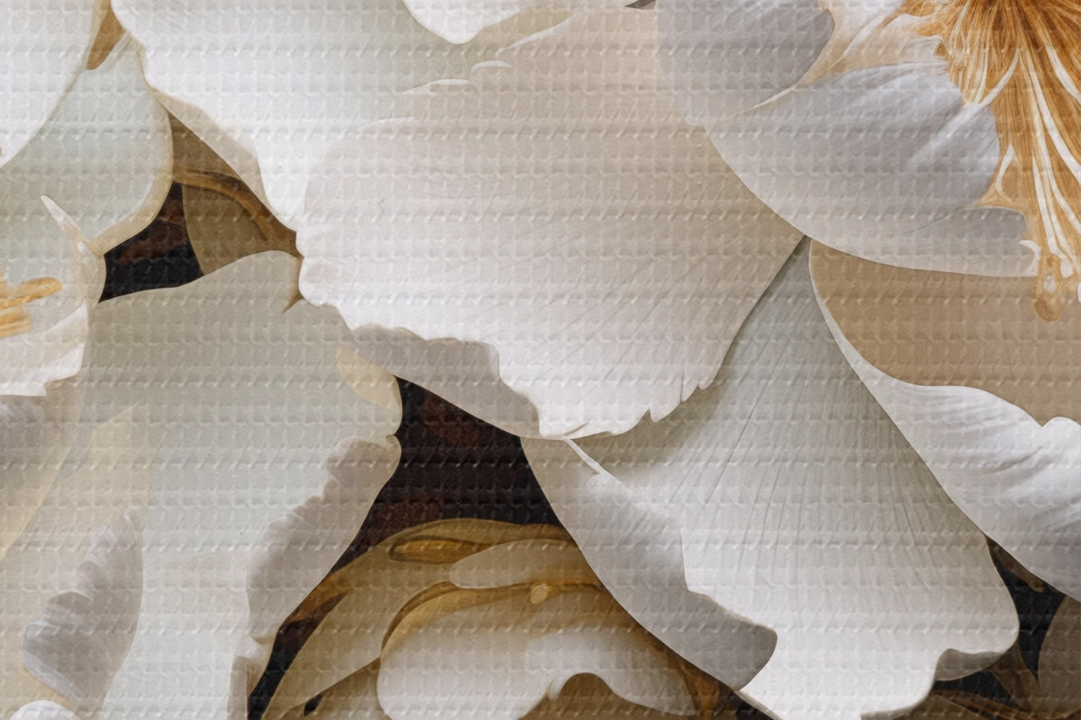 Picturi rotunde Bujor alb și galben cu frunze, detalii complicate, artă decorativă, fundal întunecat Nr r43399