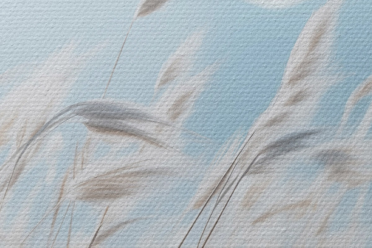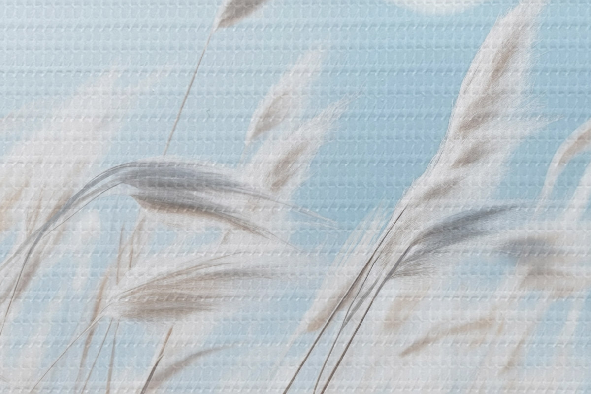 Picturi rotunde Iarbă, câmp de pampas cu un munte albastru în fundal, cer albastru deschis, minimalist, culori pastelate r43404