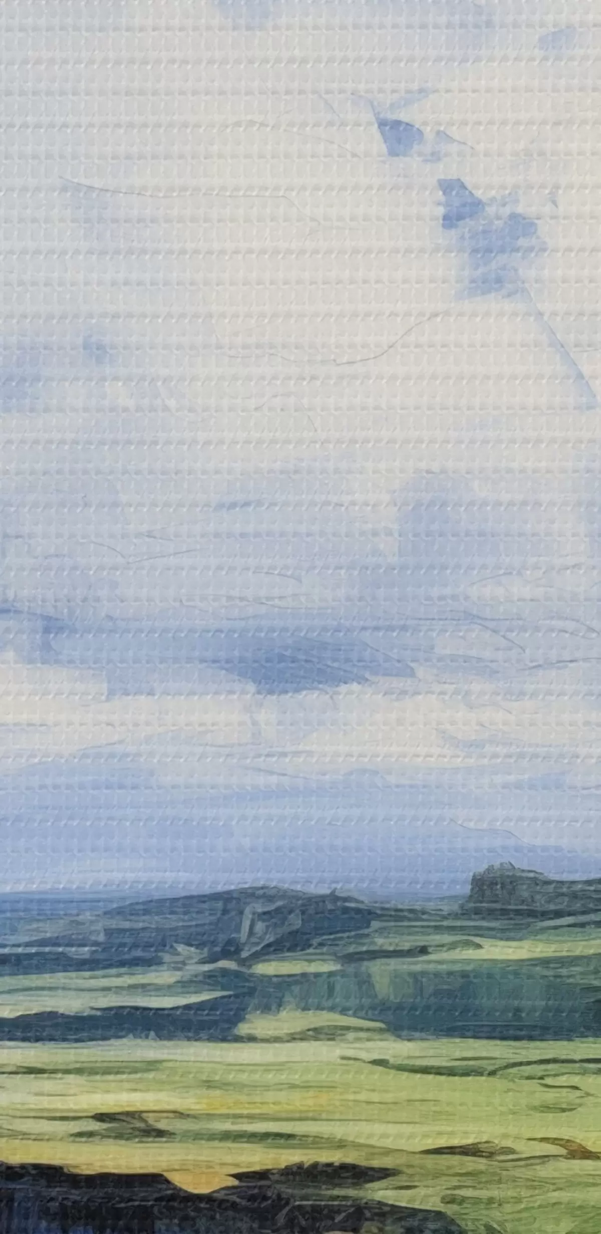 Țesătura fină a firelor de pe această pânză seamănă cu suprafața pânzelor artiștilor profesioniști.