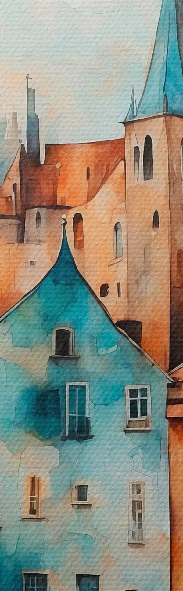Picturi rotunde Oraș european în stil acuarelă pictura r43441