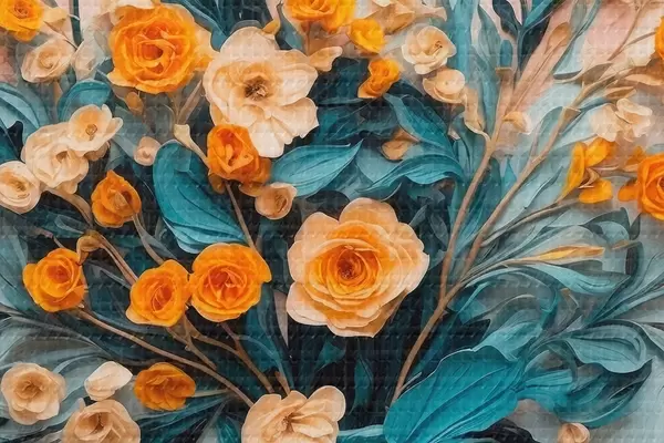 Picturi rotunde Flori în vază transparentă în stilul picturii în ulei Nr r43443
