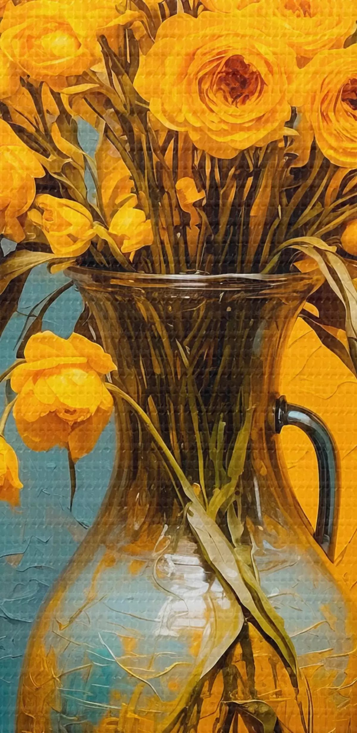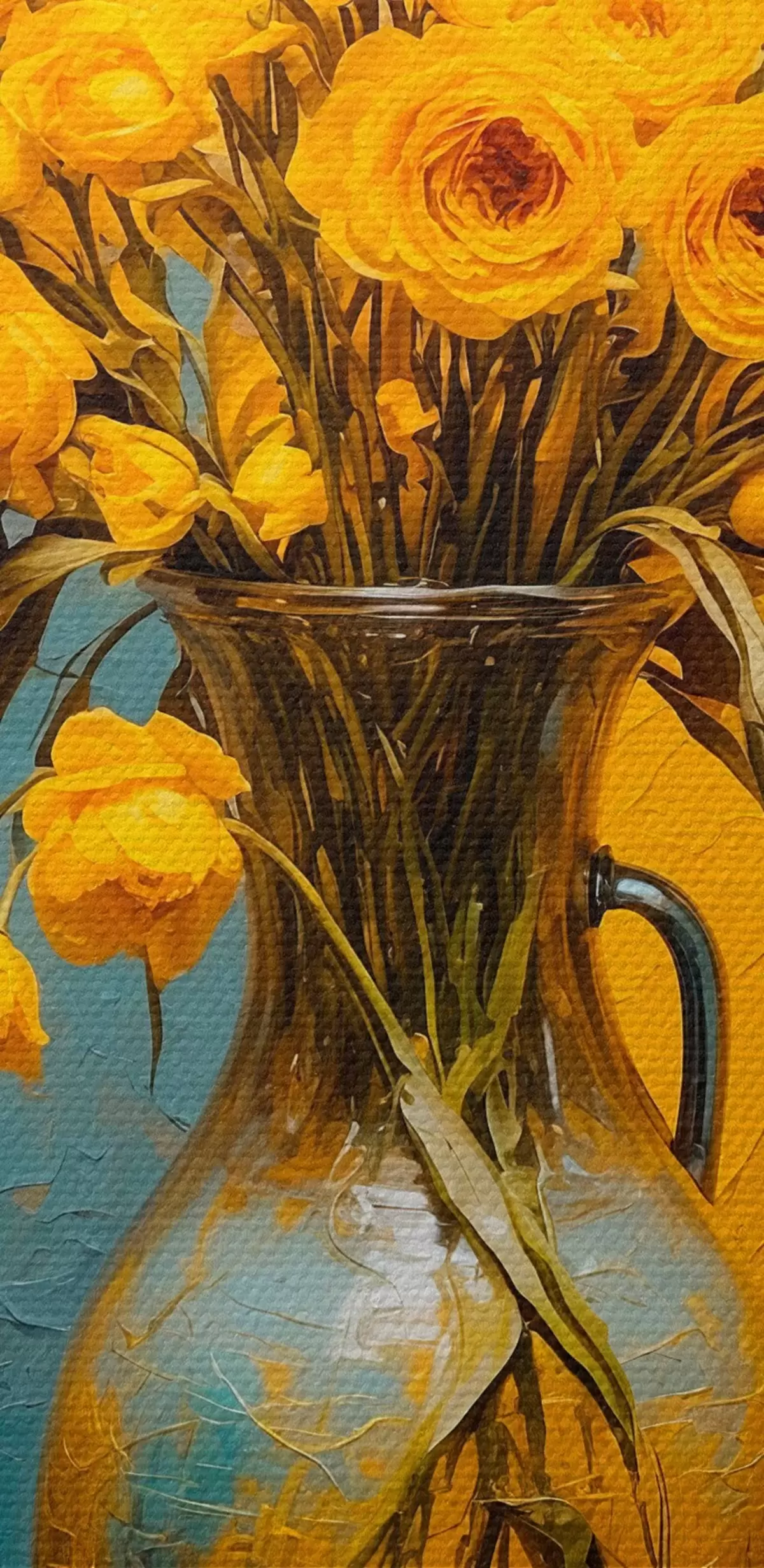 Picturi rotunde Flori galbene într-o vază pe o masă Nr r43462
