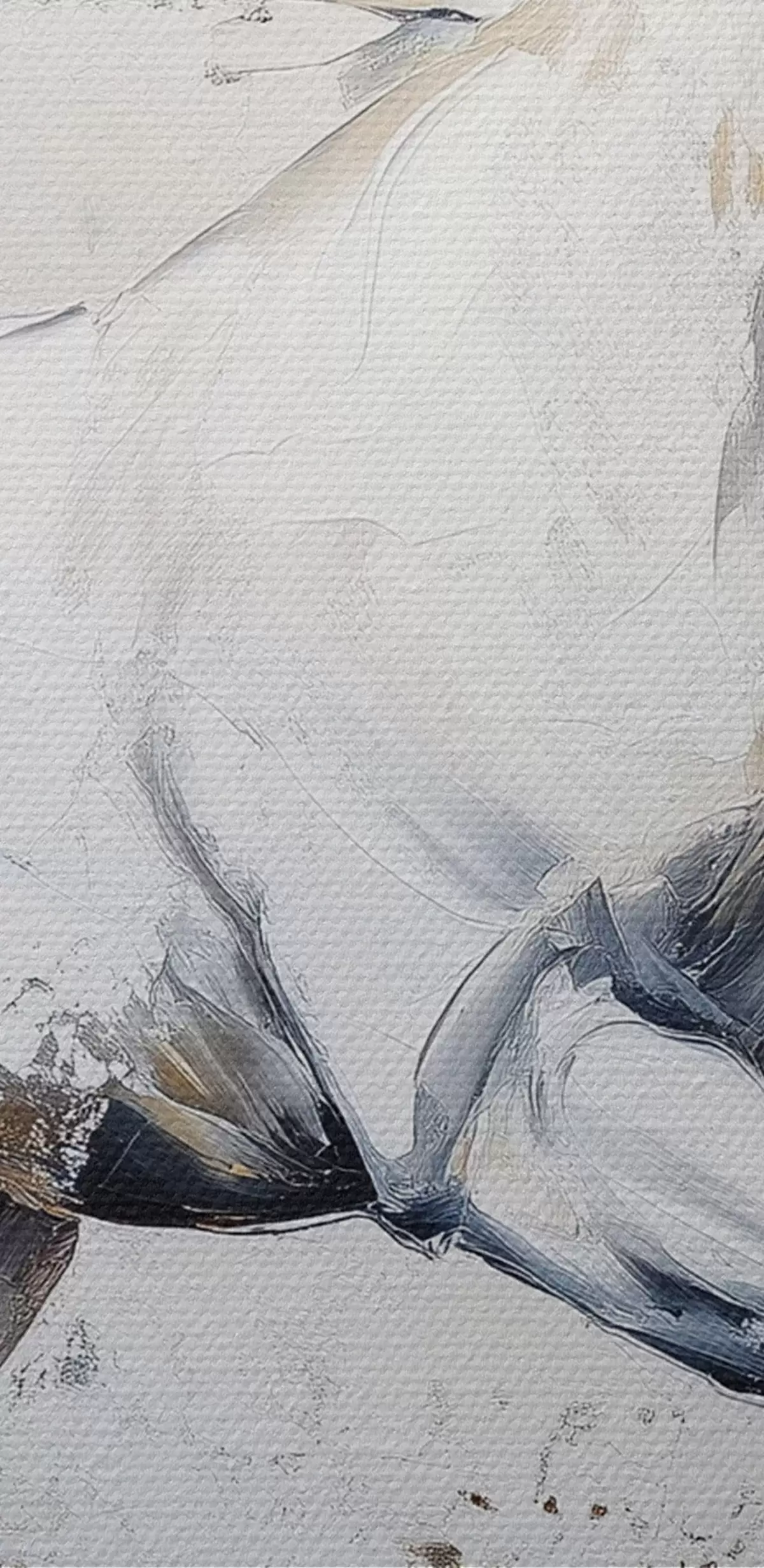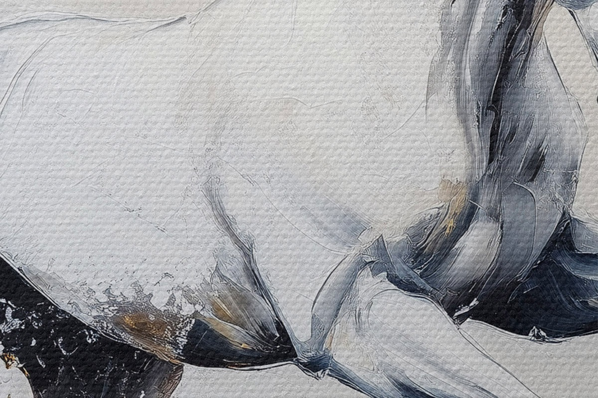 Picturi rotunde Cal alb care aleargă, desen în stil ulei, animale Nr r43498