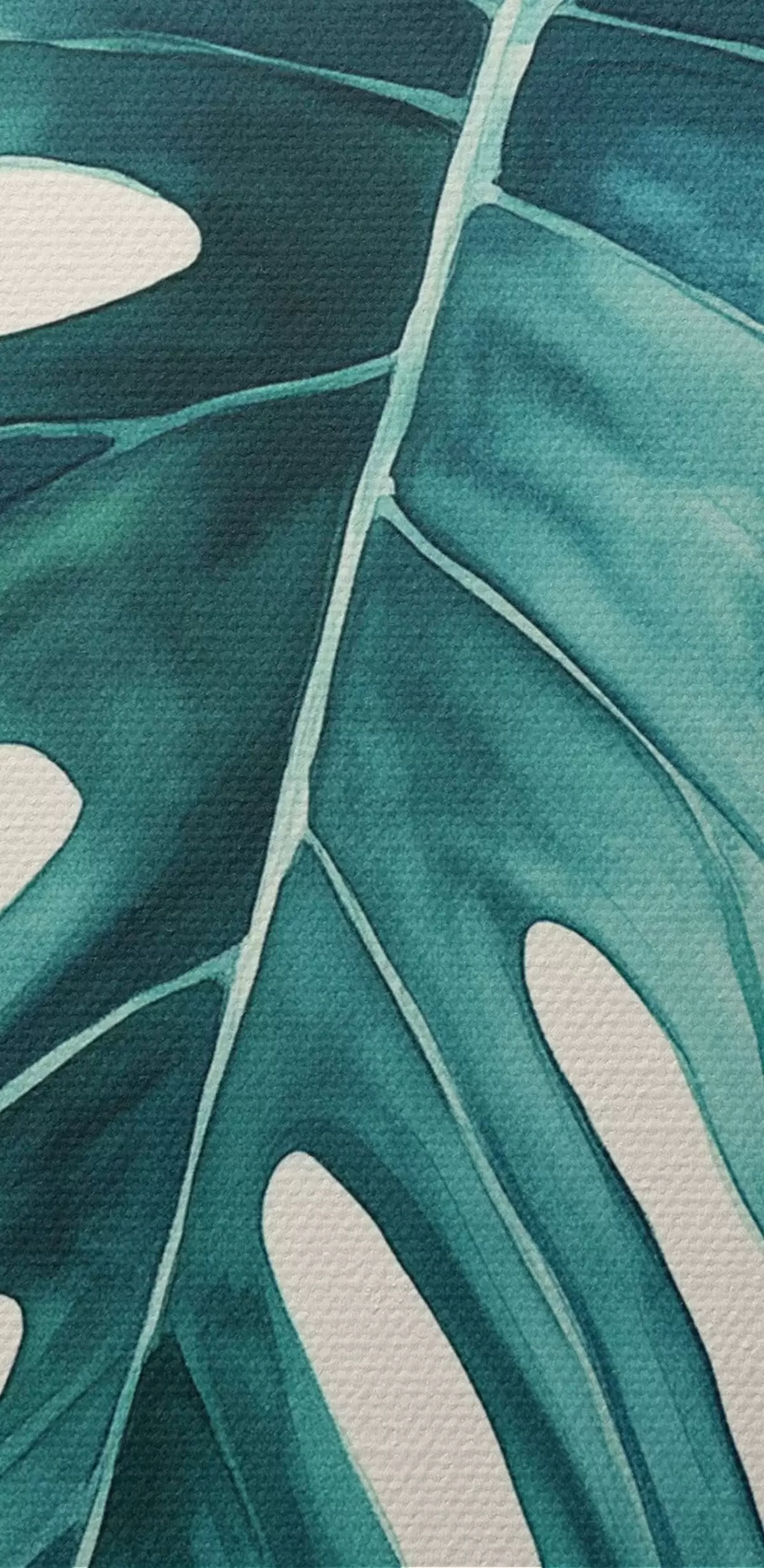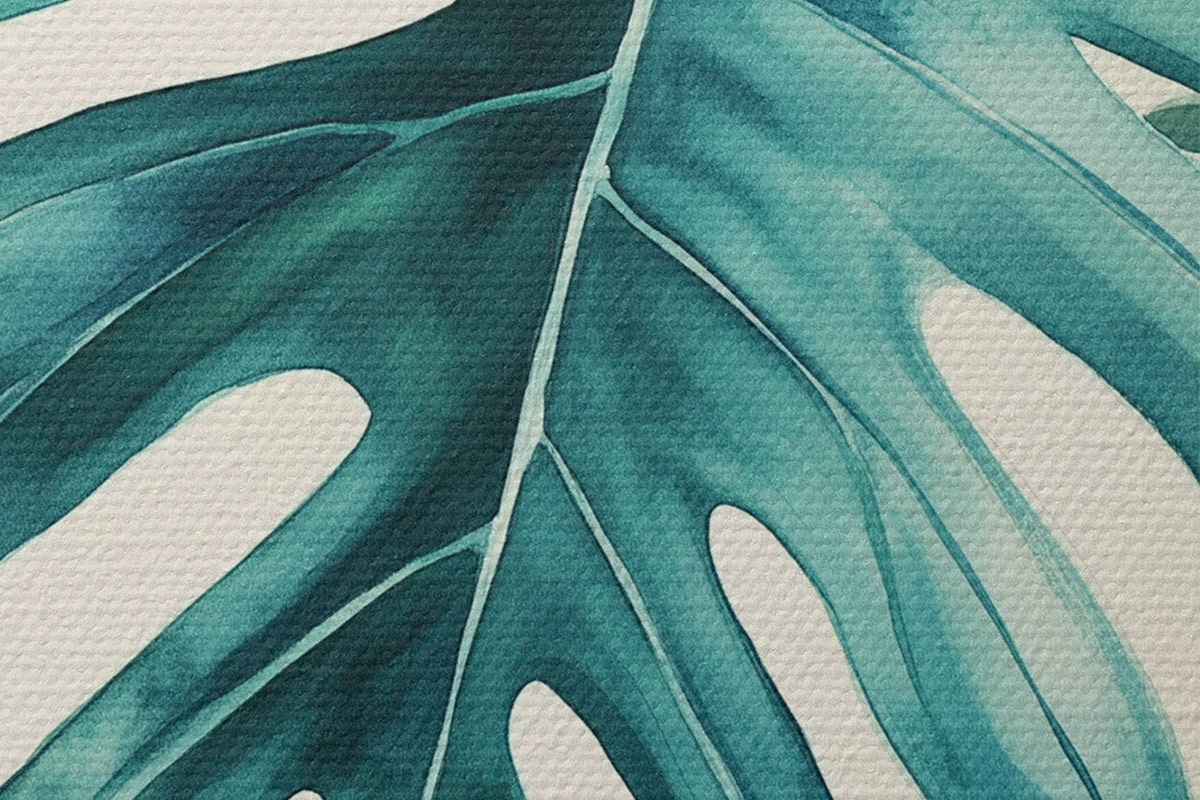 Picturi rotunde Monstera frunze de palmier, stil acuarelă, floral, tropical Nr r43507