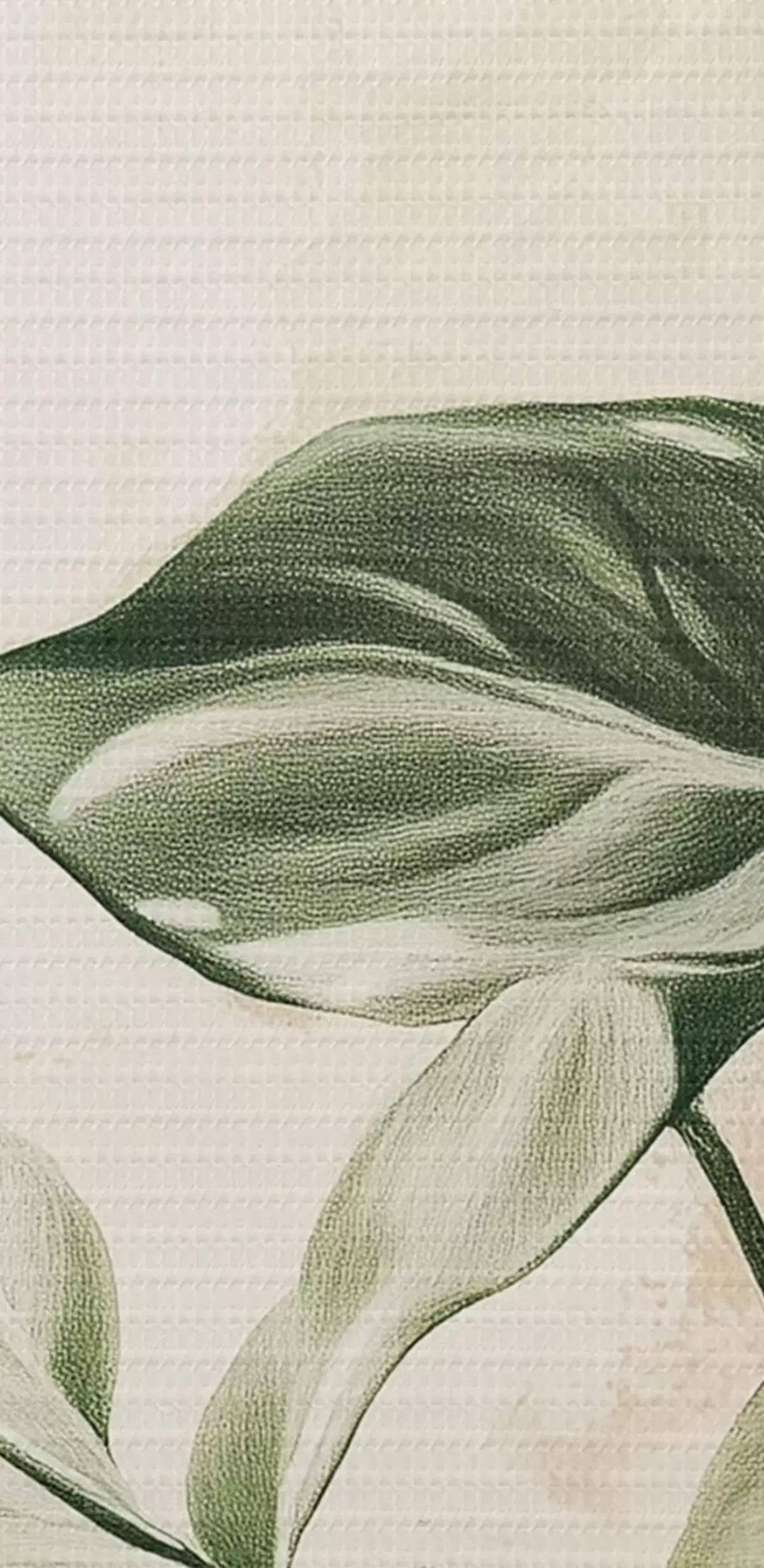 Picturi rotunde Frunze de palmier, desen în stil creion, tropical, verdeață r43509