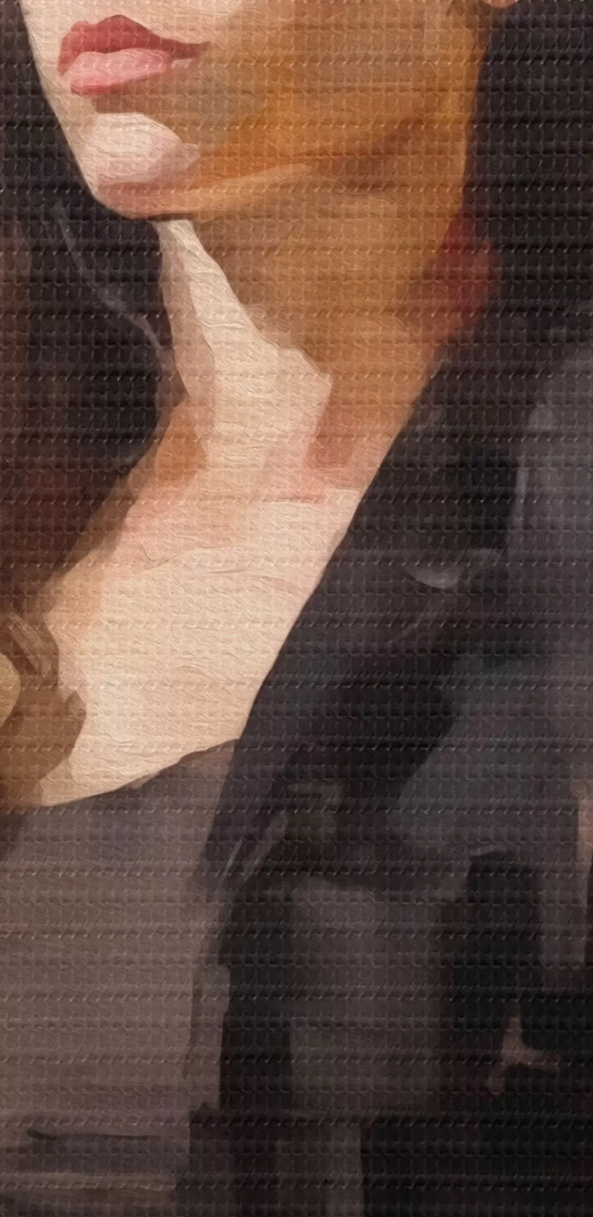 Țesătura fină a firelor de pe această pânză seamănă cu suprafața pânzelor artiștilor profesioniști.
