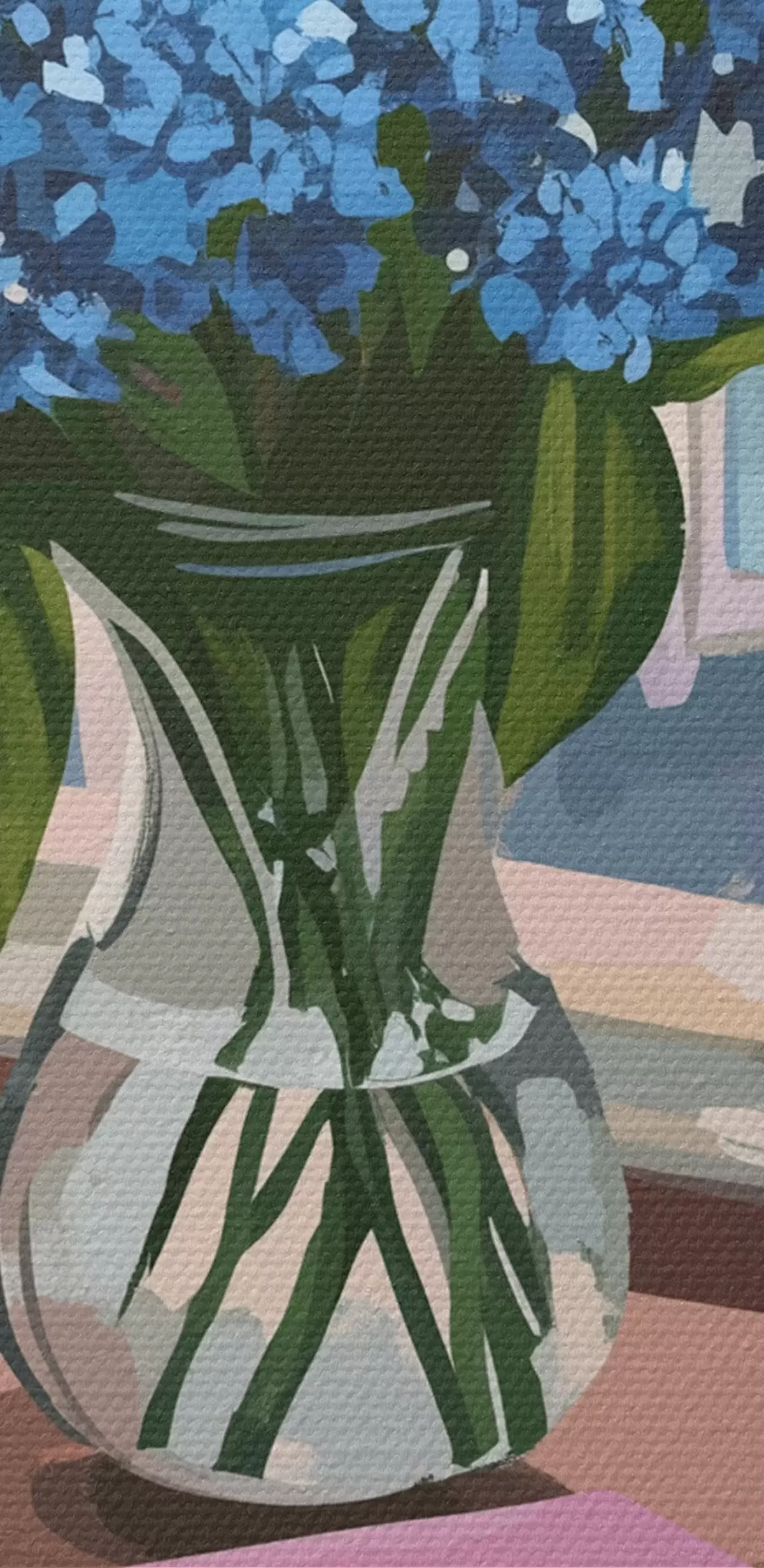Picturi rotunde Hortensii în vază, vedere la fereastră, lumânare, casă confortabilă Nr r44009