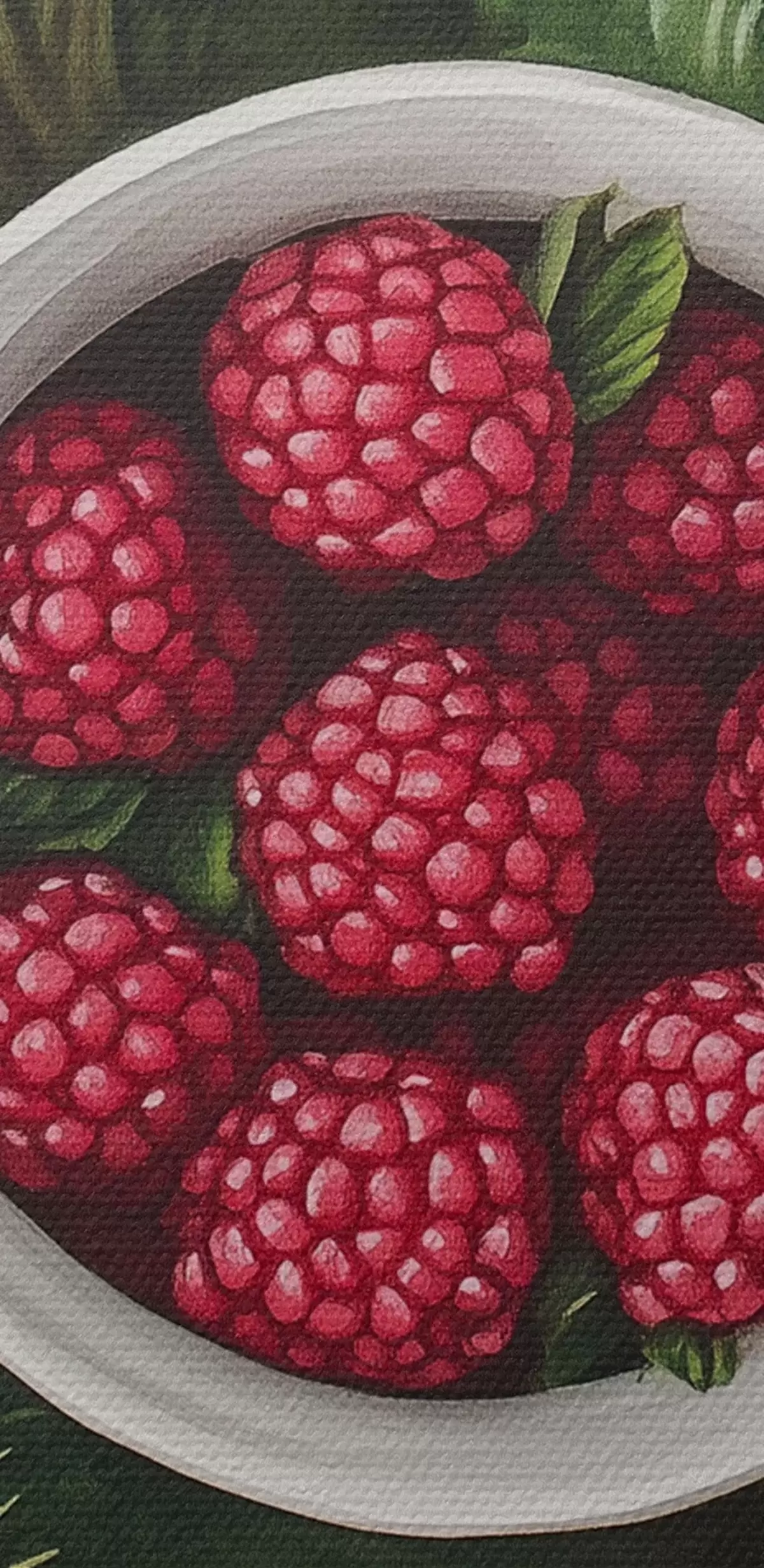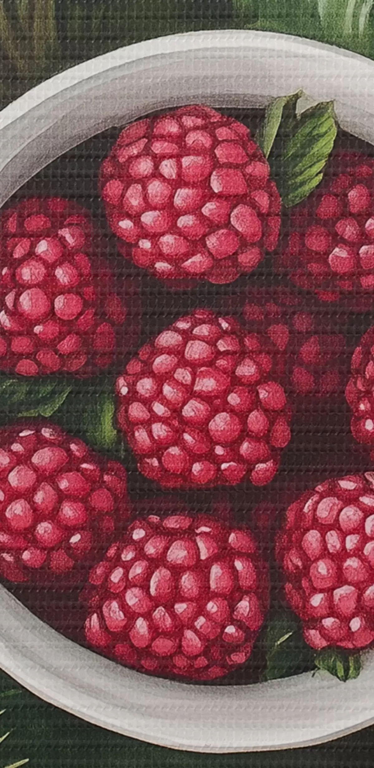 Picturi rotunde Cupa de zmeură în pădurea verde, natură, stil acuarelă Nr r44021
