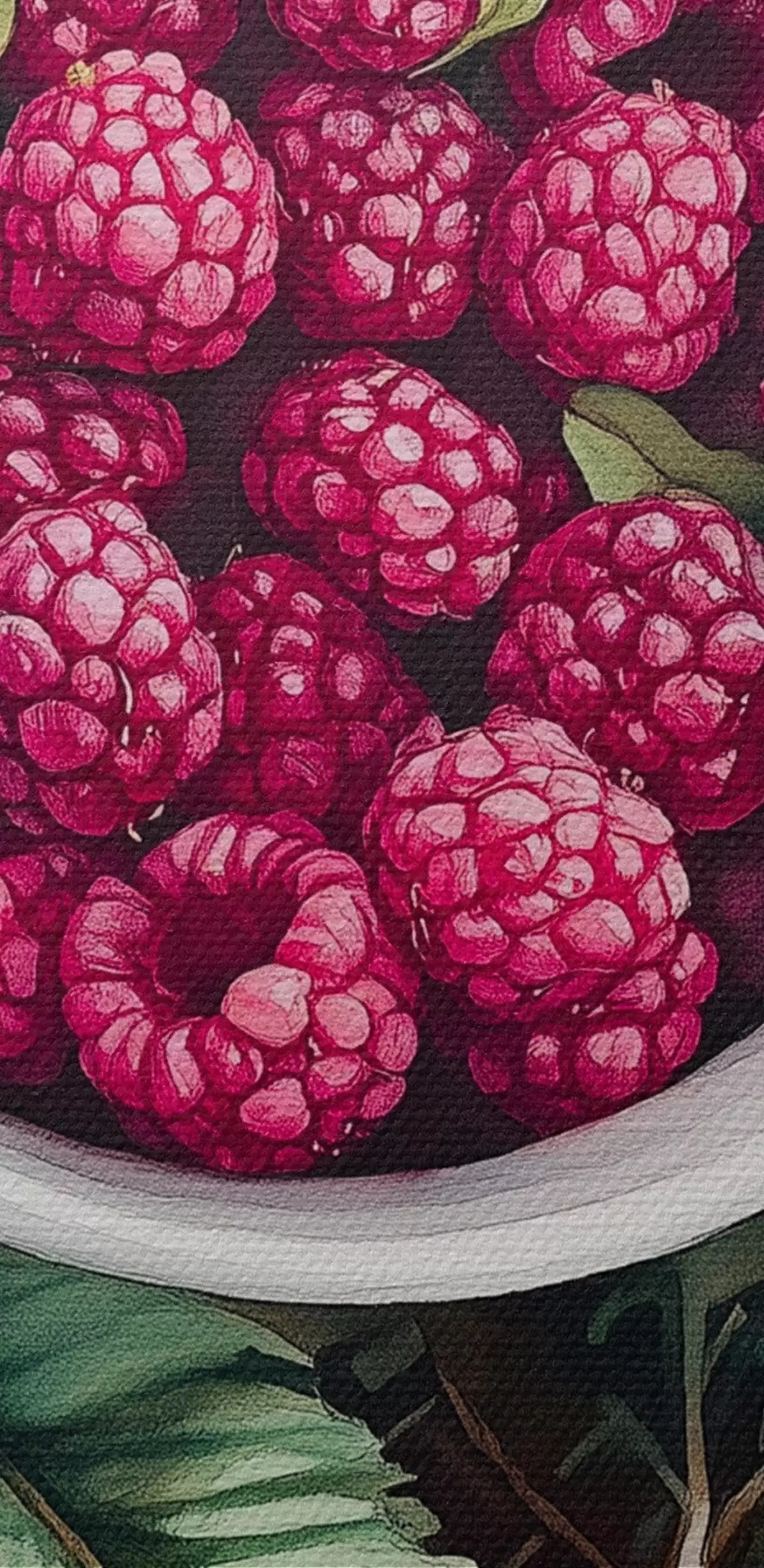 Picturi rotunde Zmeură suculentă în pădure, rustic, frunze, stil acuarelă Nr r44023
