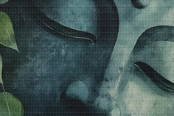 Picturi rotunde Buddha cu ochii închiși, meditație, culori verzi r44030