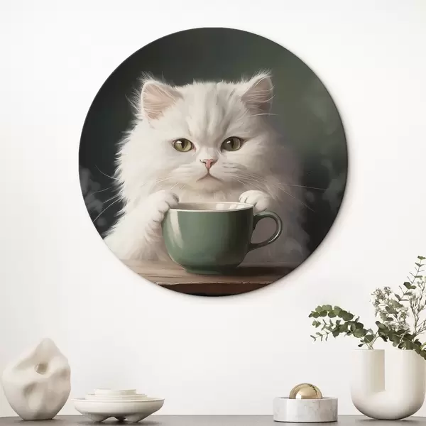 Picturi rotunde Pisică albă cu ceașcă verde Nr r44032