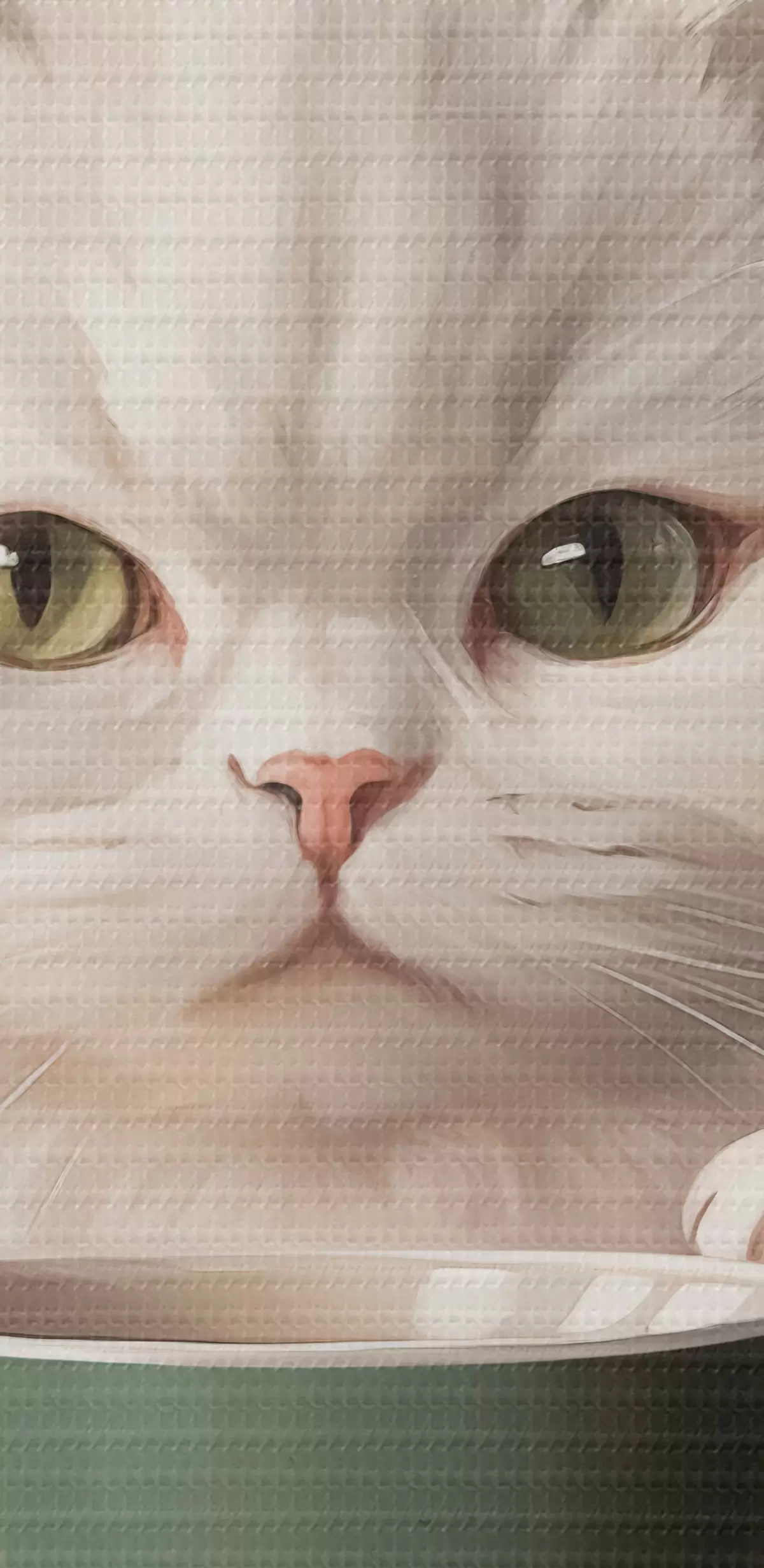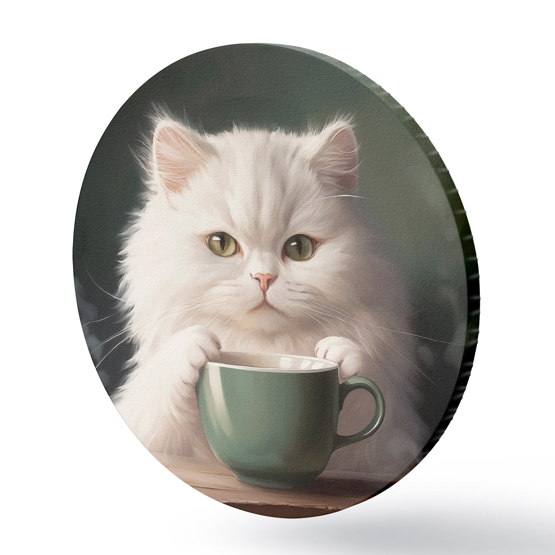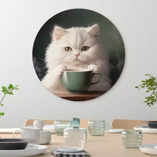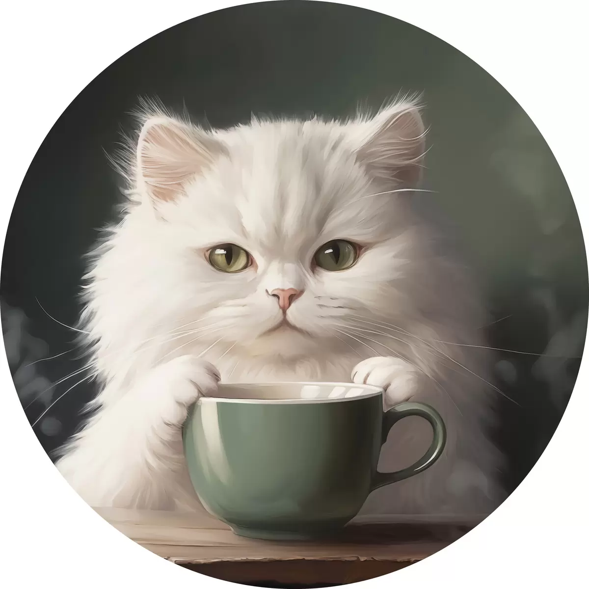 Picturi rotunde Pisică albă cu ceașcă verde Nr r44032
