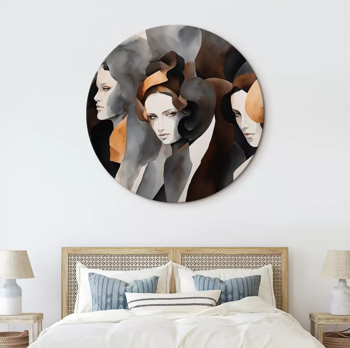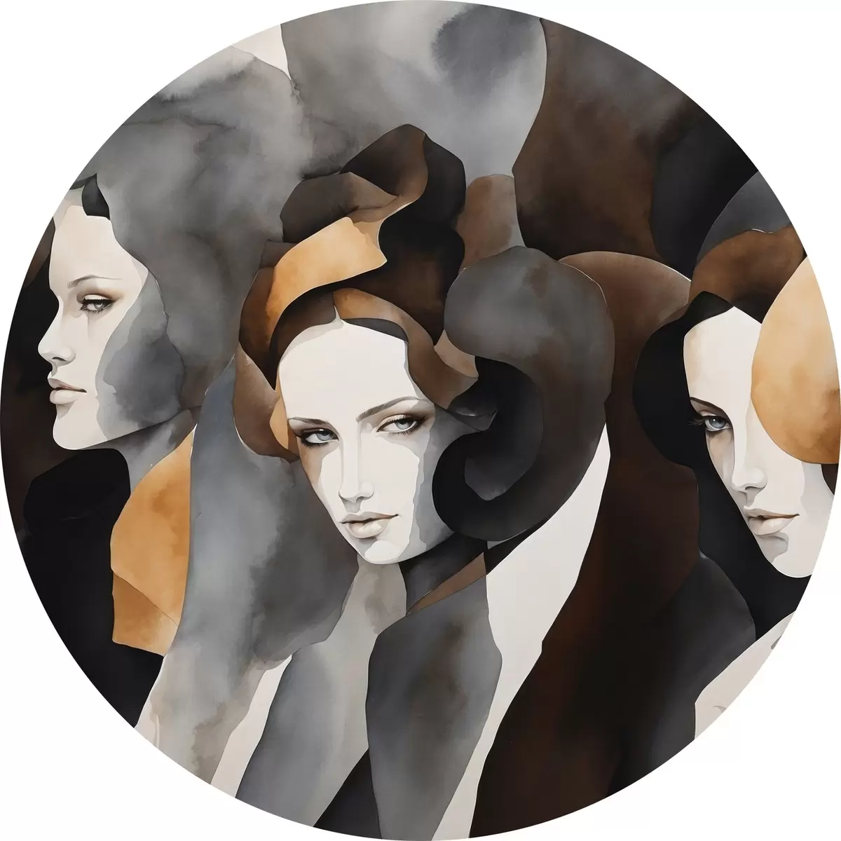 Picturi rotunde Pictură abstractă cu fețe de femei Nr r44060