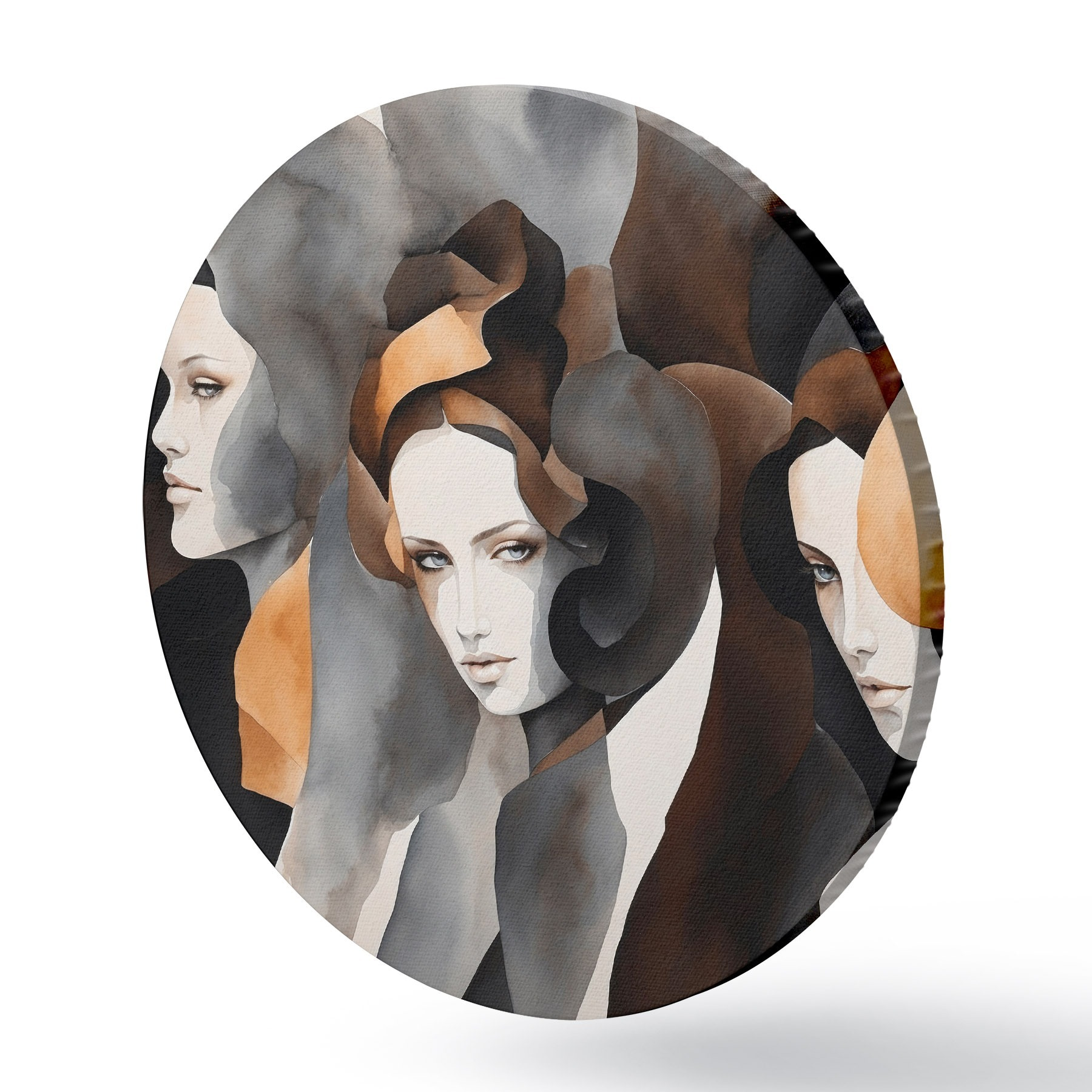 Picturi rotunde Pictură abstractă cu fețe de femei r44060