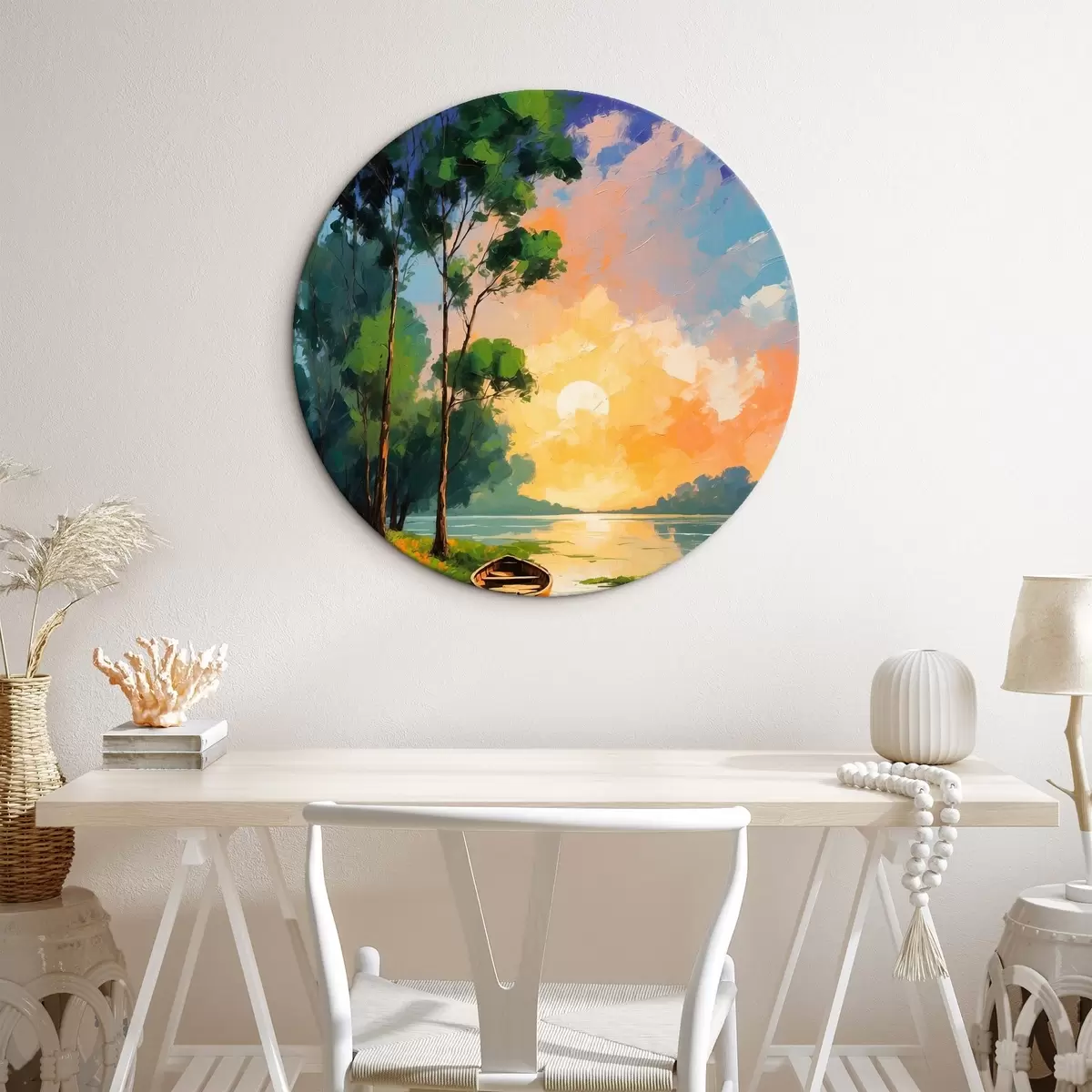 Picturi rotunde Barcă lângă o insulă în stilul picturii acrilice Nr r44065
