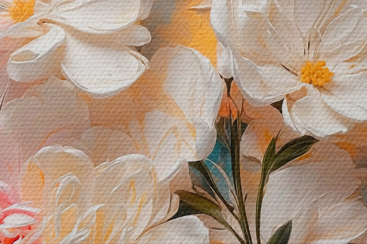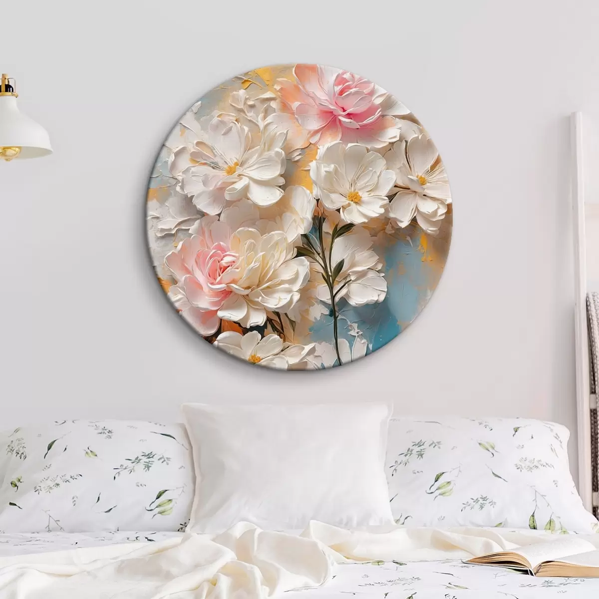 Picturi rotunde Flori albe și roz pe fundal abstract r44066