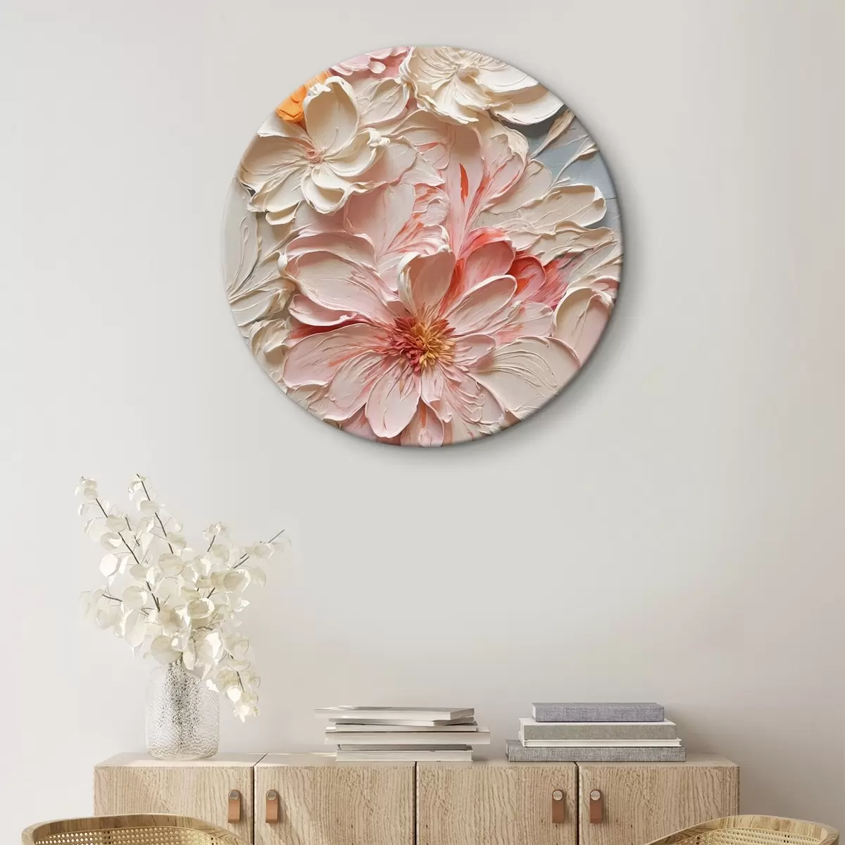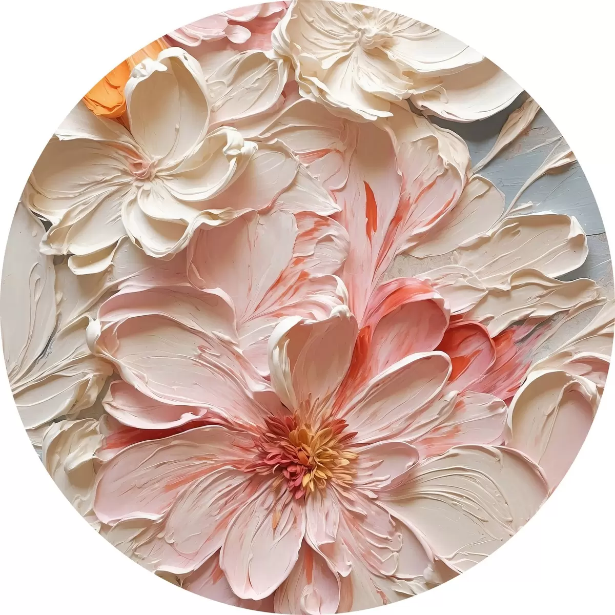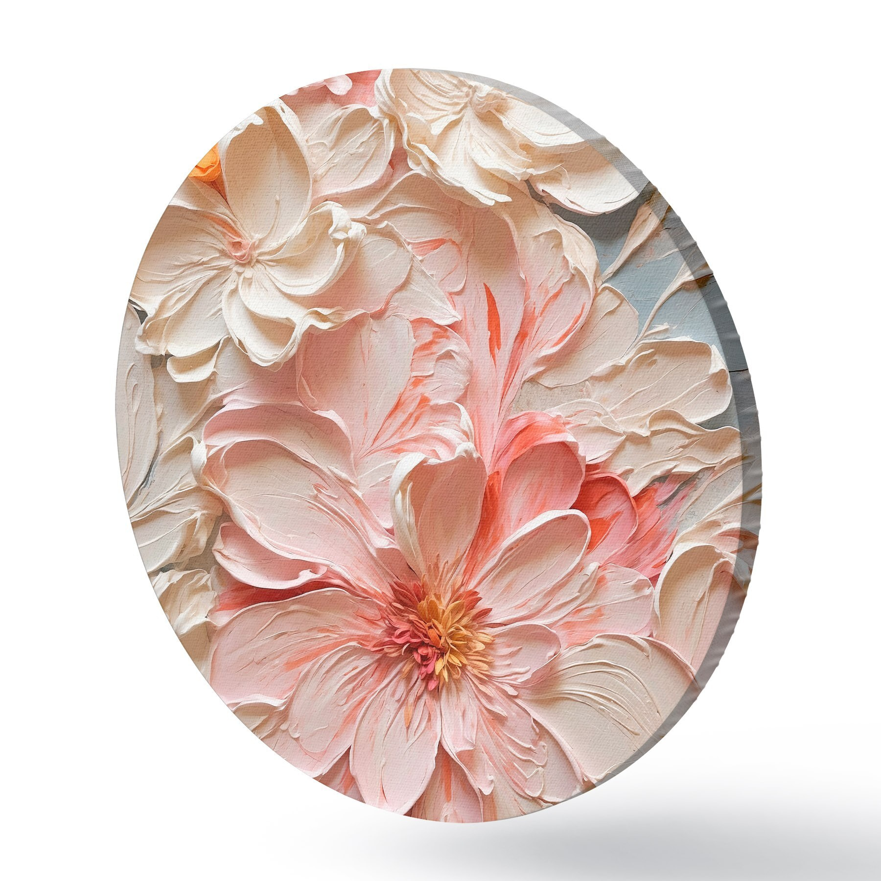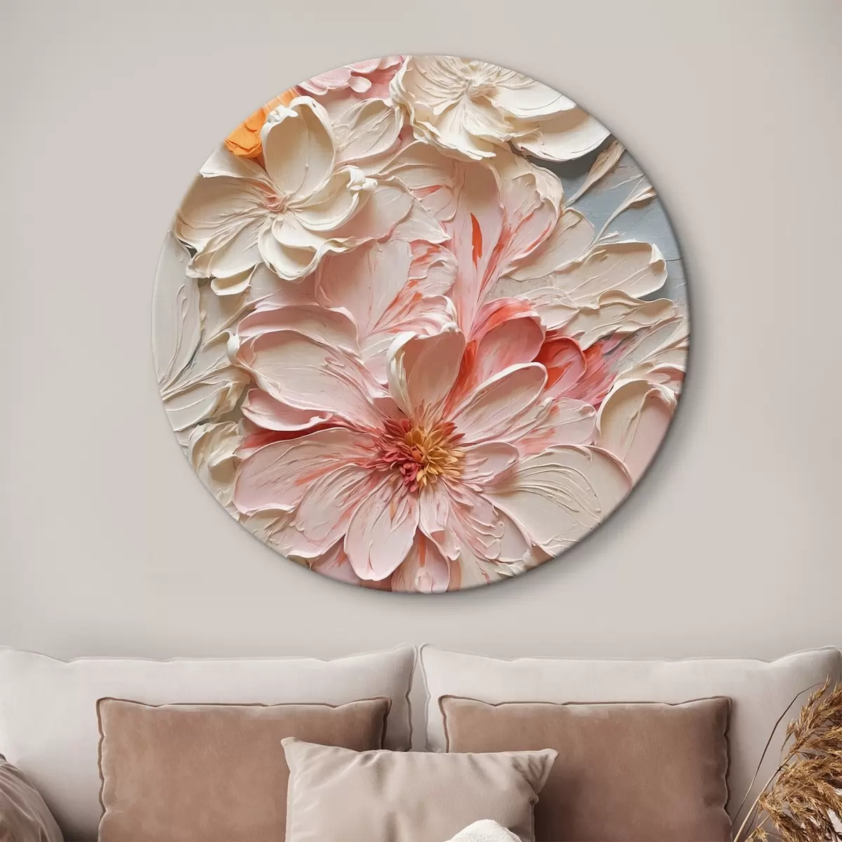Picturi rotunde Flori albe și roz pe fundal albastru în stil pictură în ulei Nr r44074
