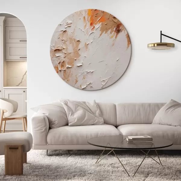 Picturi rotunde Pictură abstractă în ulei cu culori albe și maro r44076
