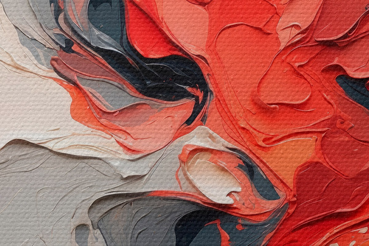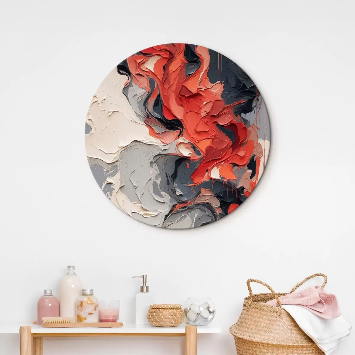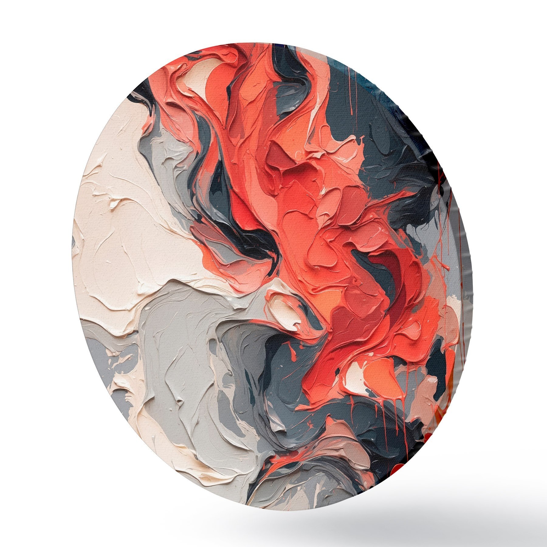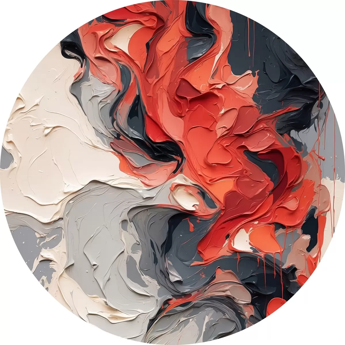 Picturi rotunde Pictură abstractă în ulei în culorile roșu, negru și gri r44079
