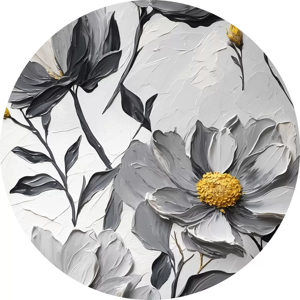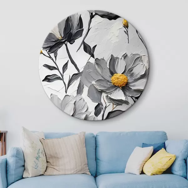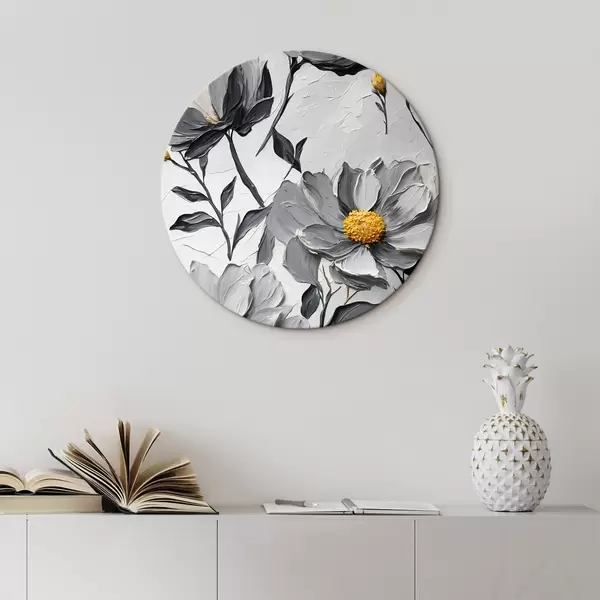 Picturi rotunde Flori gri pe fundal gri în stil pictură în ulei Nr r44080