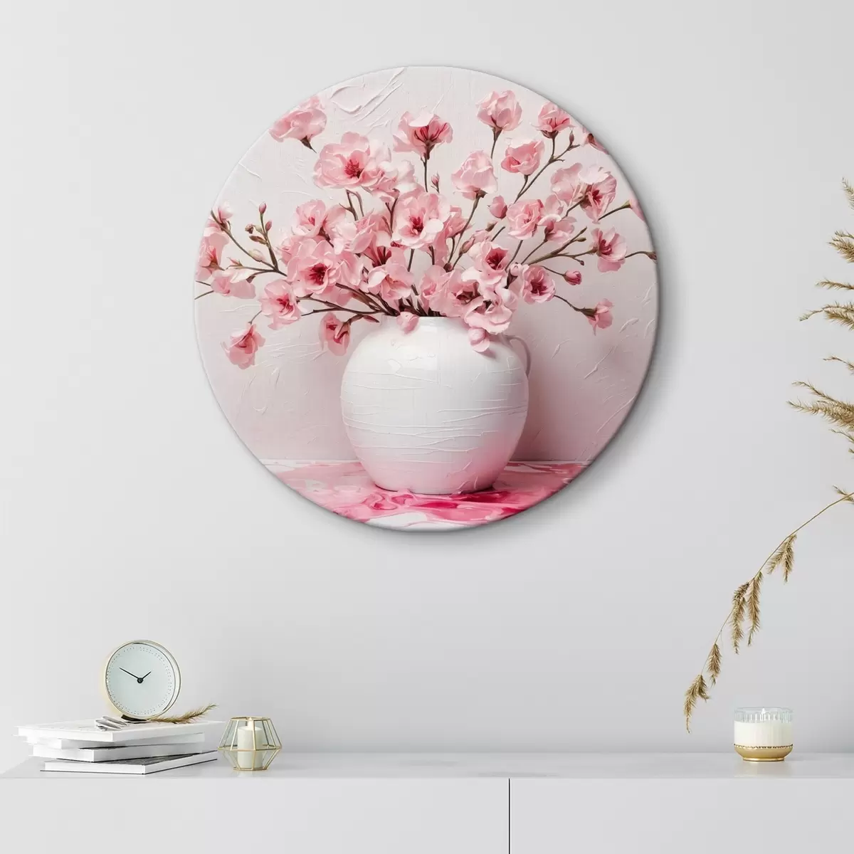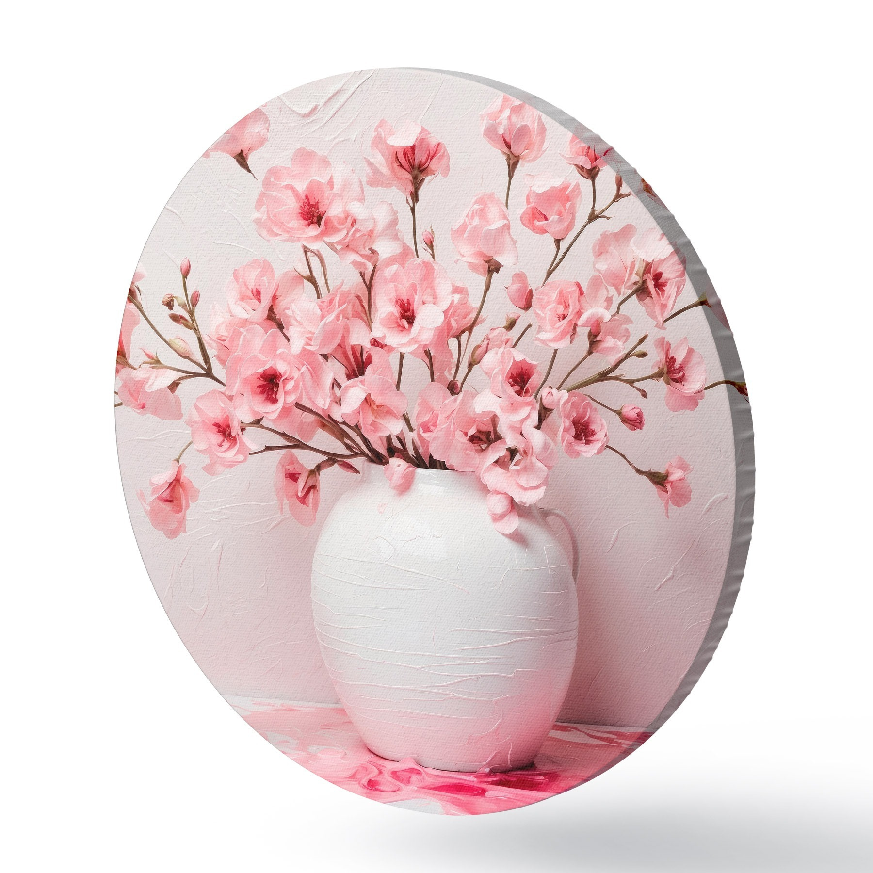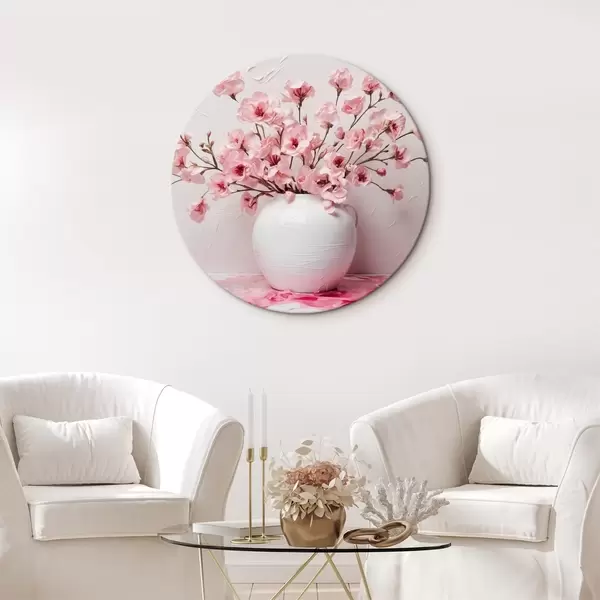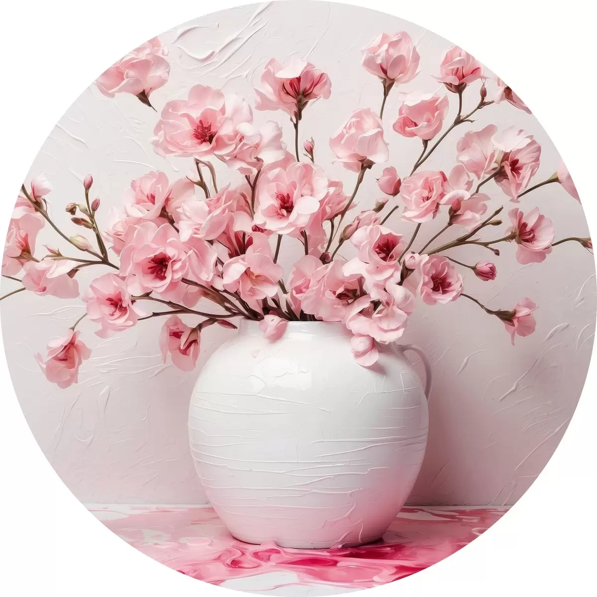 Picturi rotunde Flori roz în vază mare albă Nr r44081