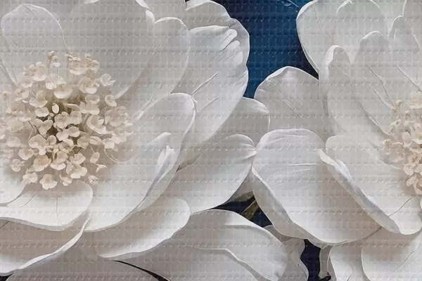 Picturi rotunde Flori albe pe fundal albastru pictură în ulei Nr r44091
