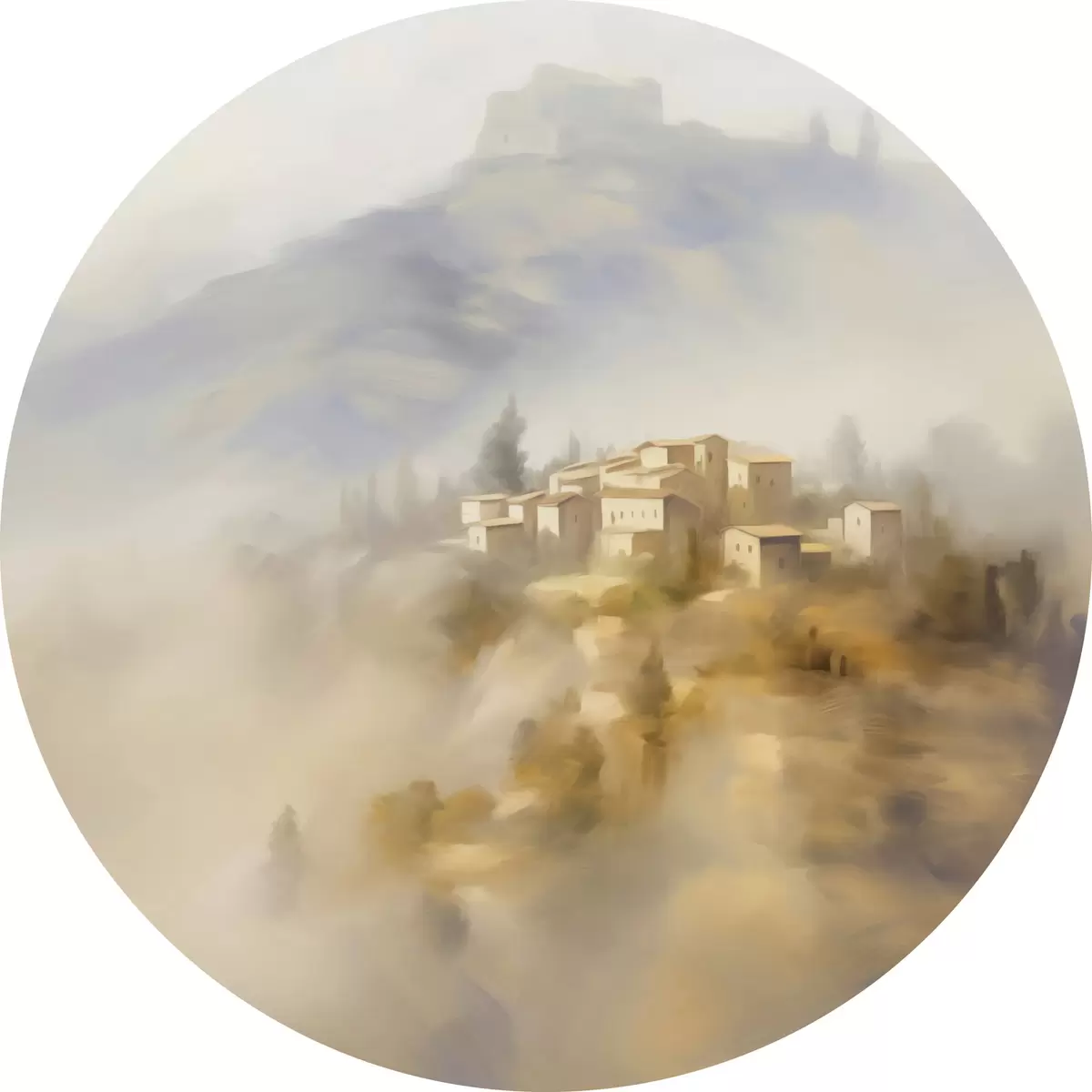 Picturi rotunde Sat pe fundalul munților Nr r44127