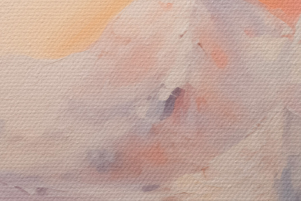 Țesătura fină a firelor de pe această pânză seamănă cu suprafața pânzelor artiștilor profesioniști.