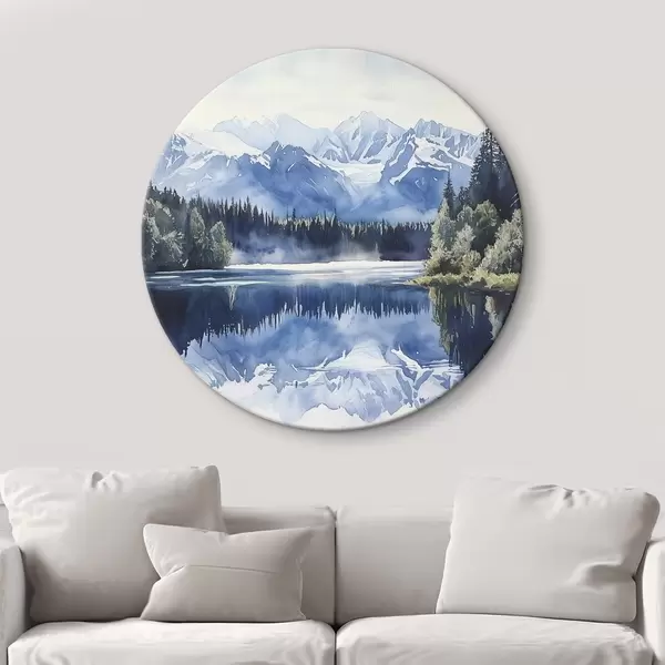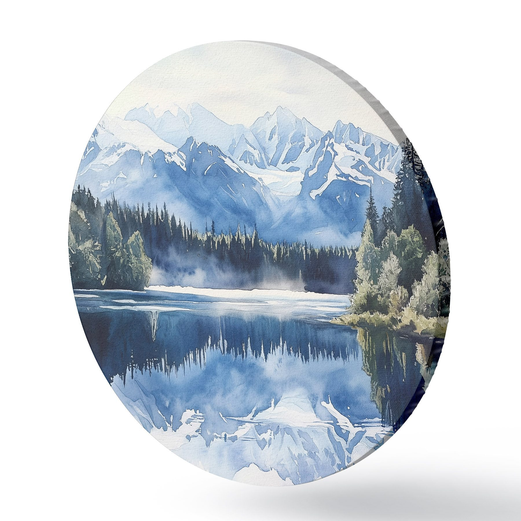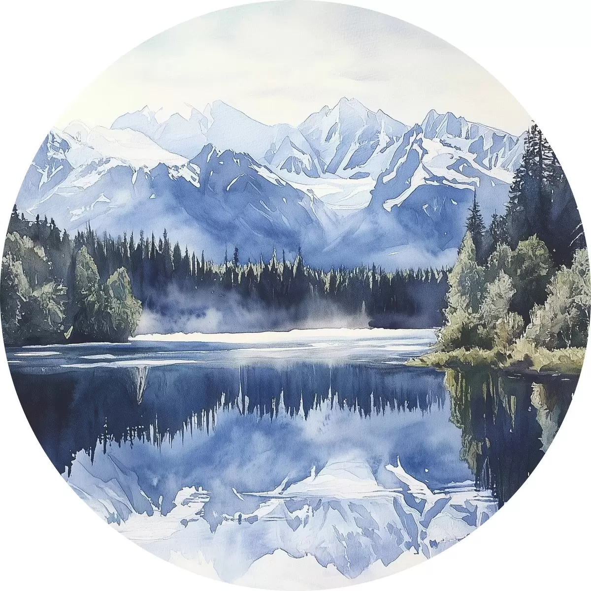Picturi rotunde Munți frumoși în Noua Zeelandă, stil acuarelă, lac, pădure r44144