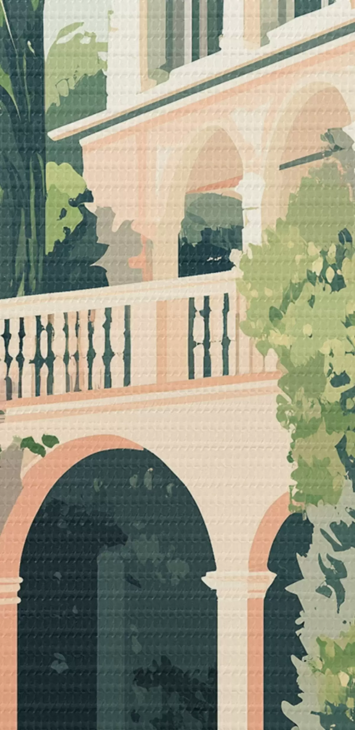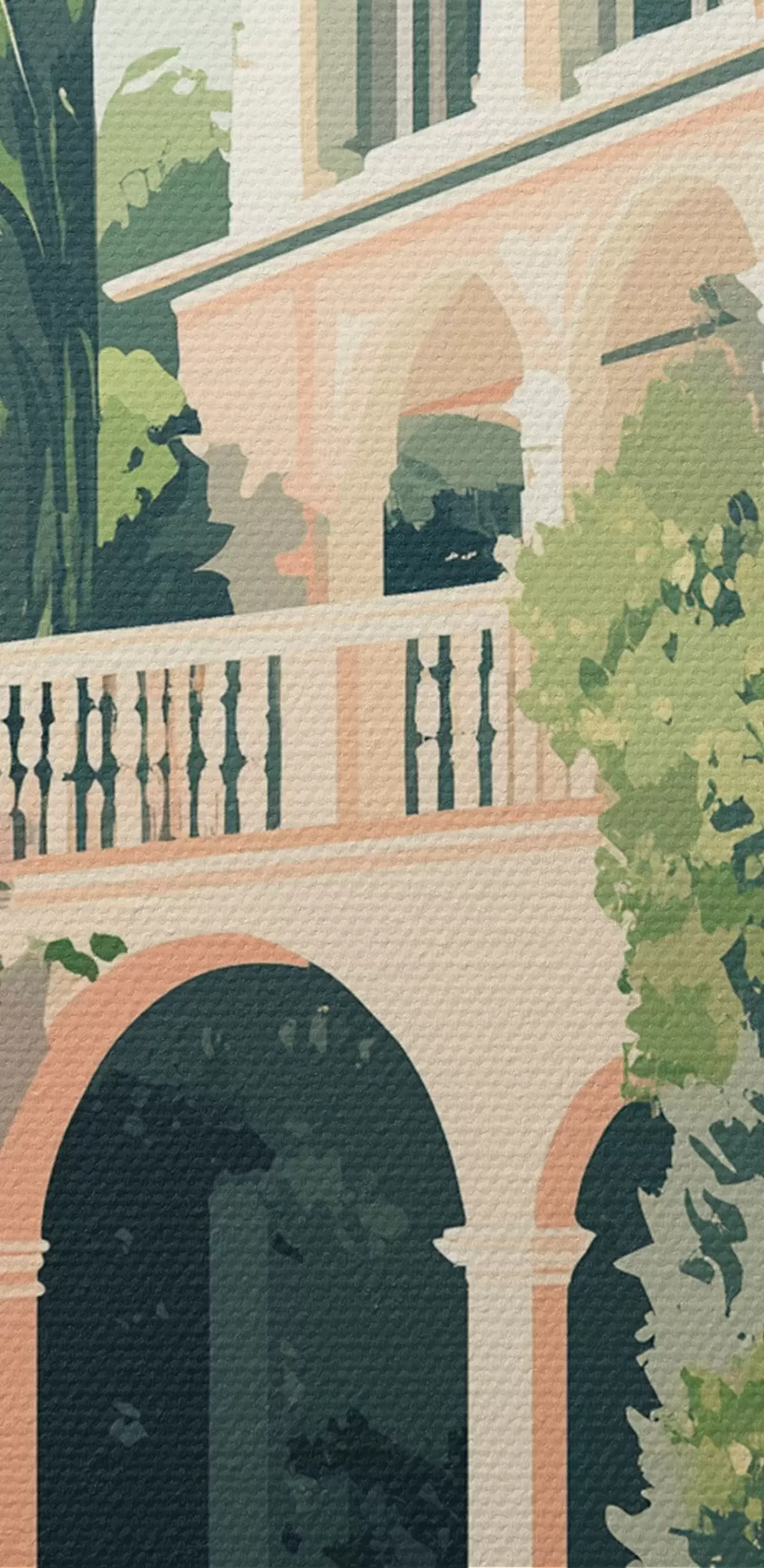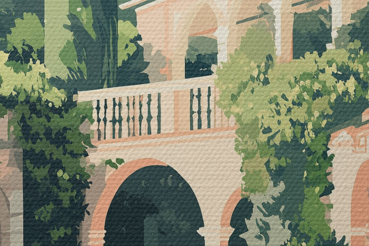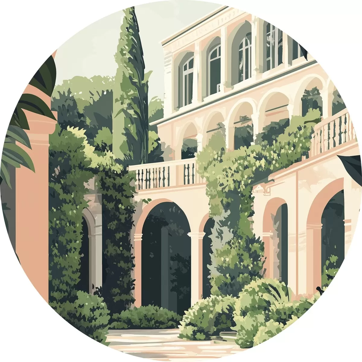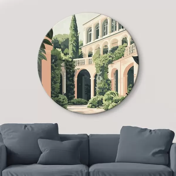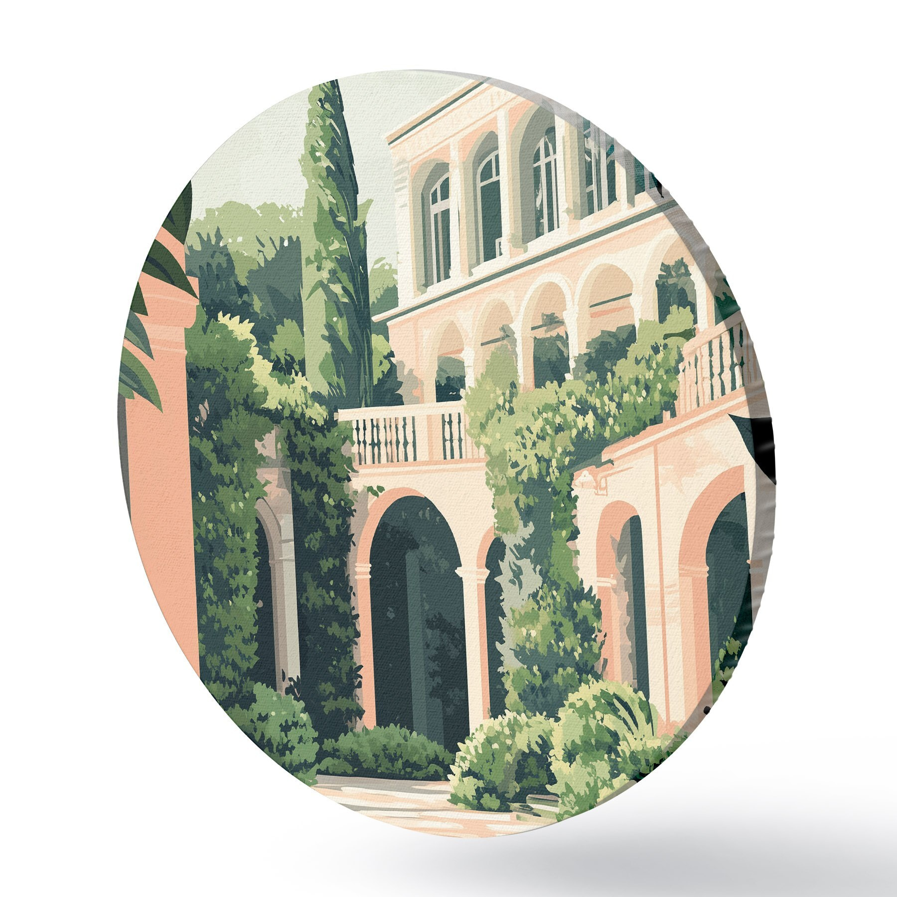 Picturi rotunde Arhitectură mediteraneană, natură tropicală, stil plat, vilă cu grădină Nr r44150