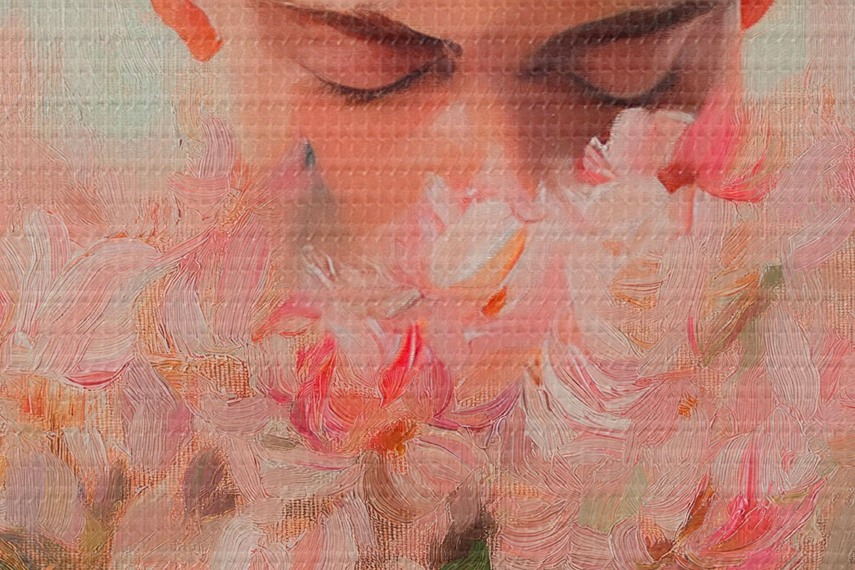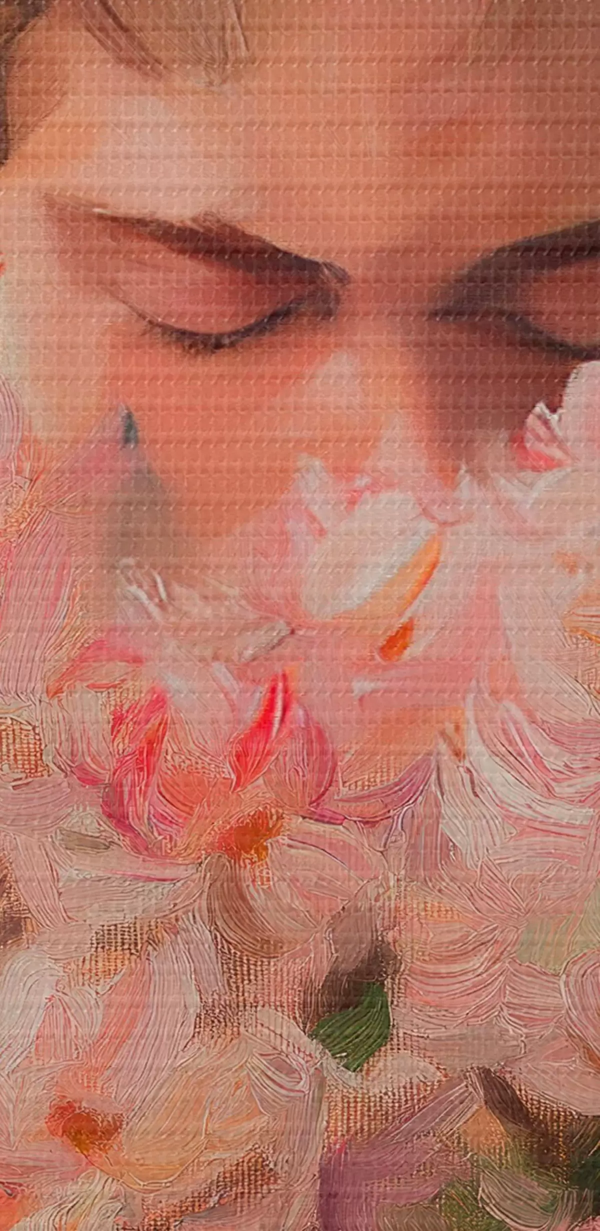 Țesătura fină a firelor de pe această pânză seamănă cu suprafața pânzelor artiștilor profesioniști.