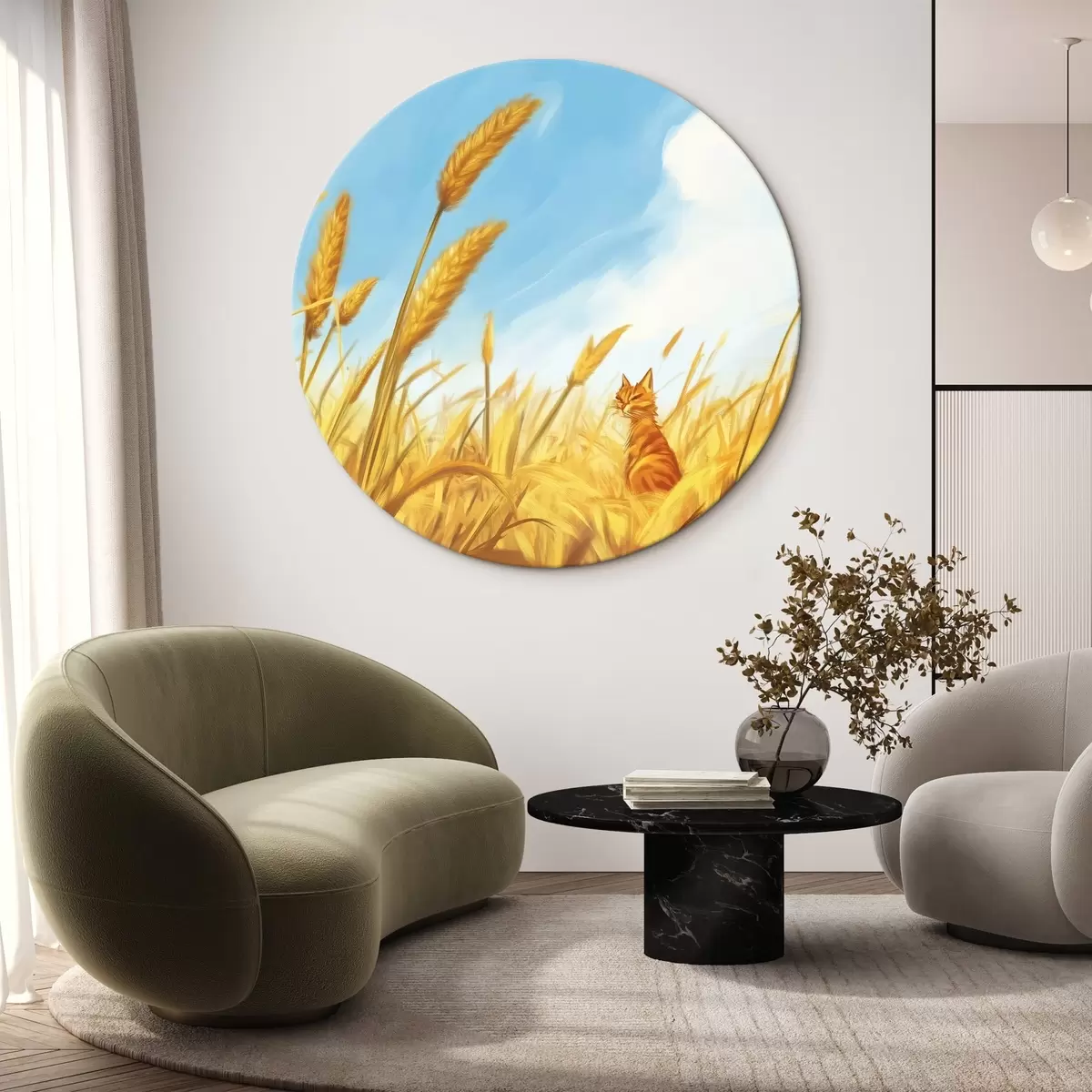 Picturi rotunde Pisică în câmp cu spice de grâu r44211