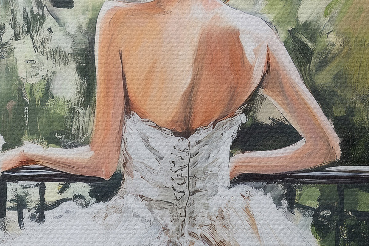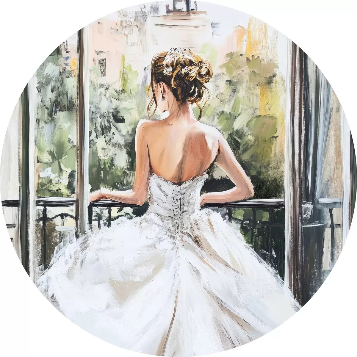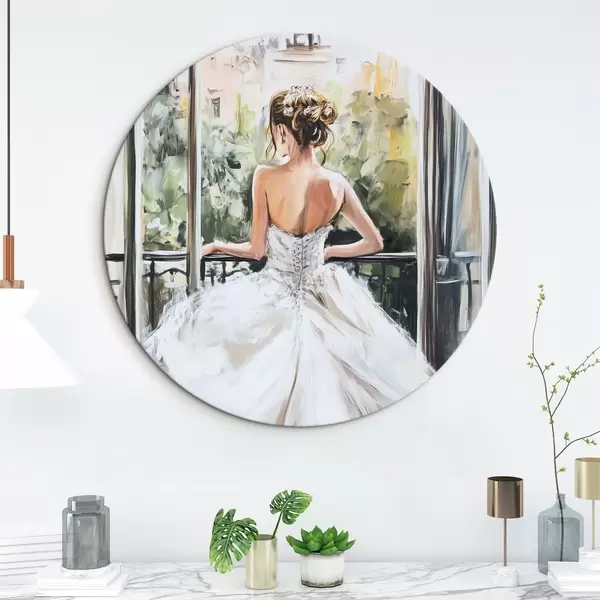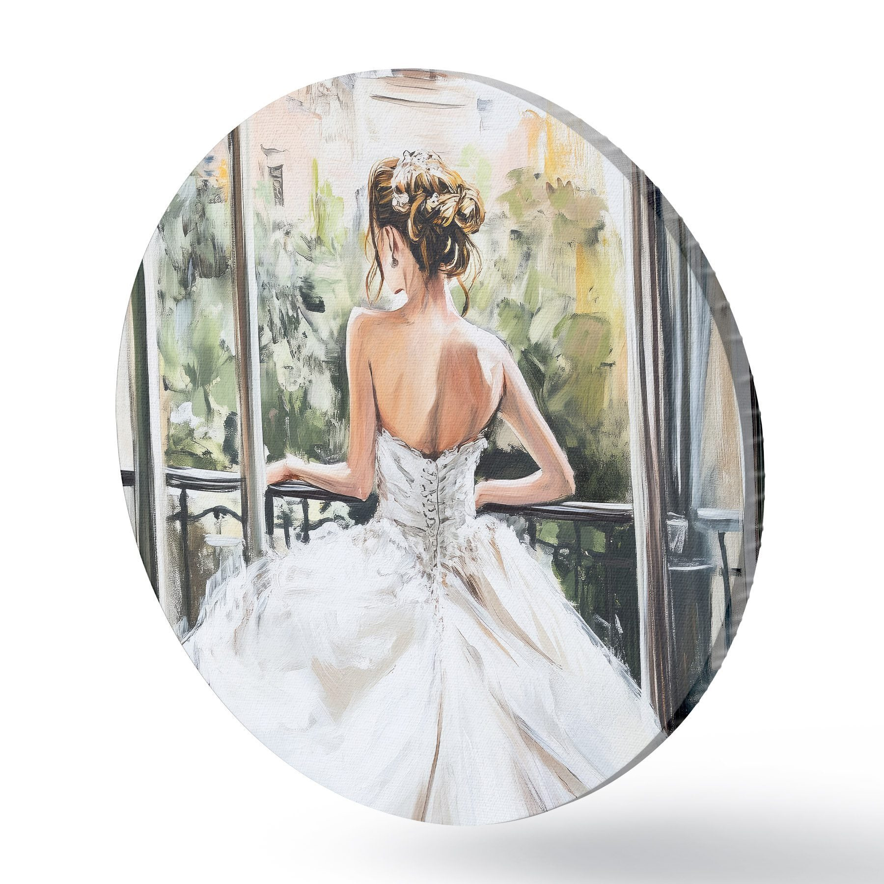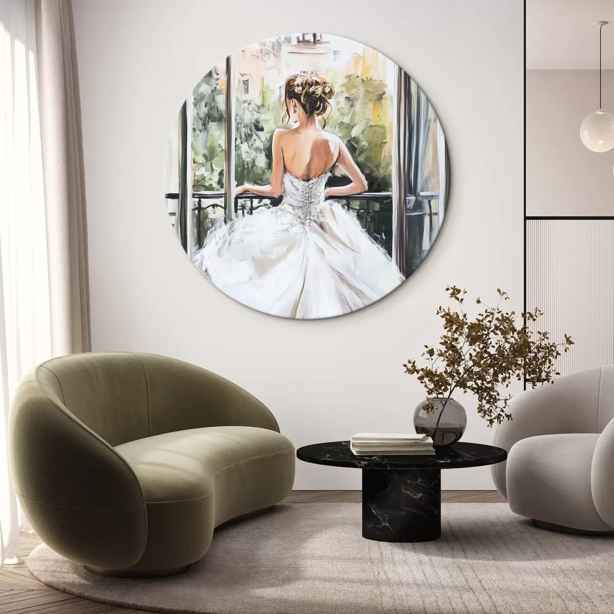 Picturi rotunde Fată într-o rochie albă pe balcon Nr r44226