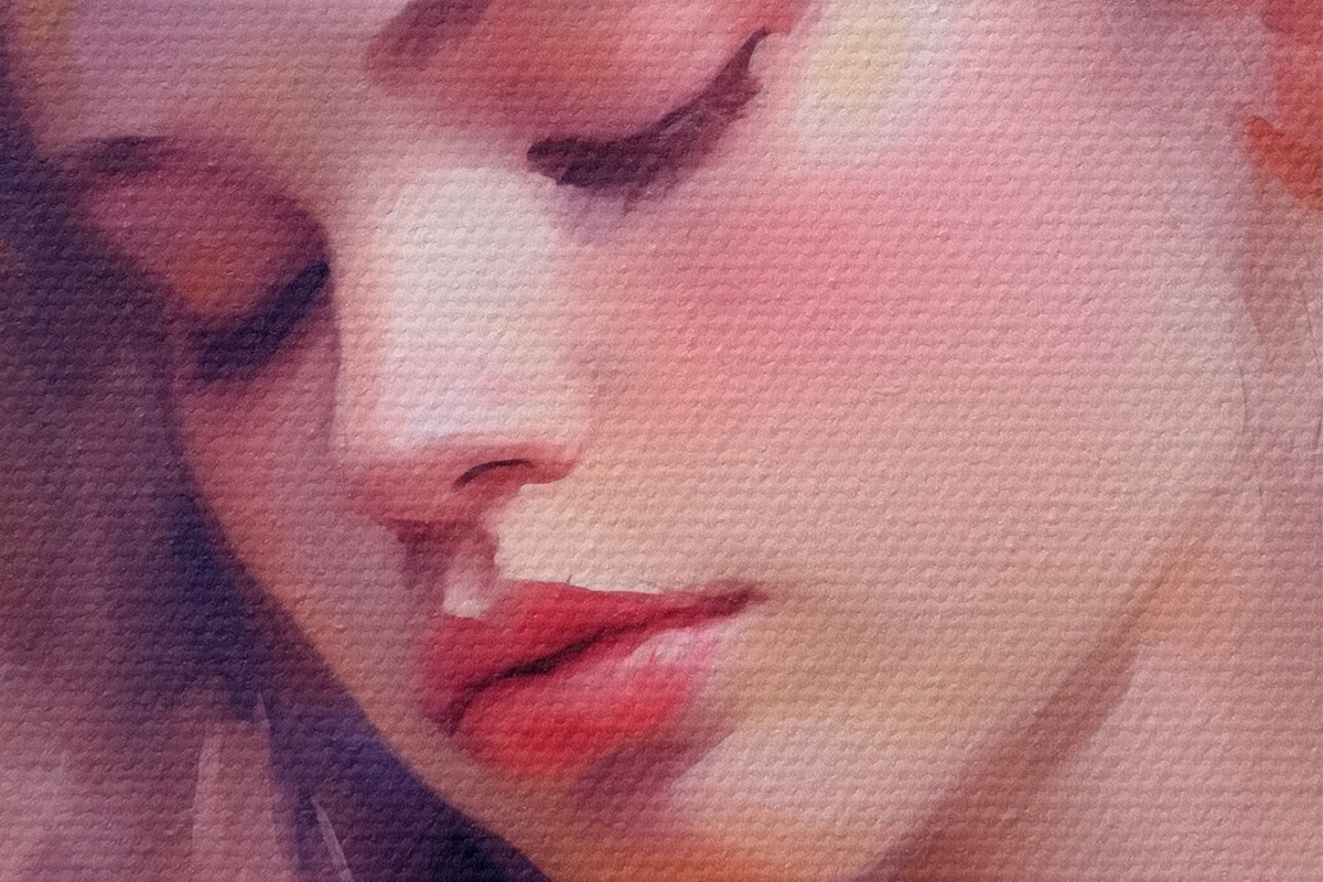 Țesătura fină a firelor de pe această pânză seamănă cu suprafața pânzelor artiștilor profesioniști.